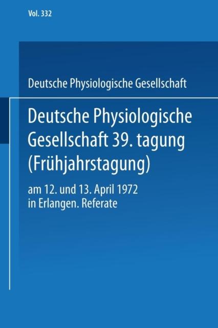 Книга Deutsche Physiologische Gesellschaft 39. Tagung (Fruhjahrstagung) : Am 12. Und 13. April 1972 In Erlangen. Referate