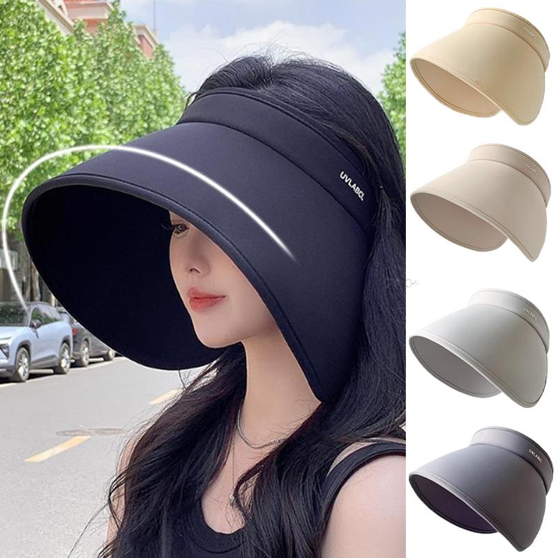 Шляпа с солнцезащитным козырьком с очень большими полями для женщин, пляжная шляпа с пустым верхом из ледяного шелка, капюшон с запахом, летние солнцезащитные козырьки с защитой от УФ-лучей