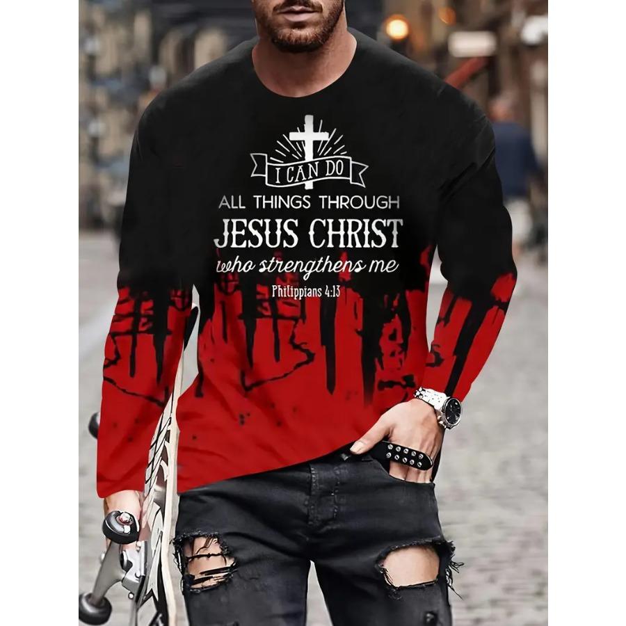 Мужская футболка с длинным рукавом и круглым вырезом с цветными блоками и буквенным узором, весна-осень