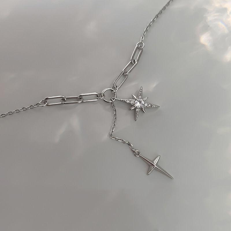 Серебряное ожерелье с подвеской в виде шестиконечной звезды «Фея», простая цепочка для ключицы, блестящий циркон, кисточка, крест, милая свадебная бижутерия для ключицы