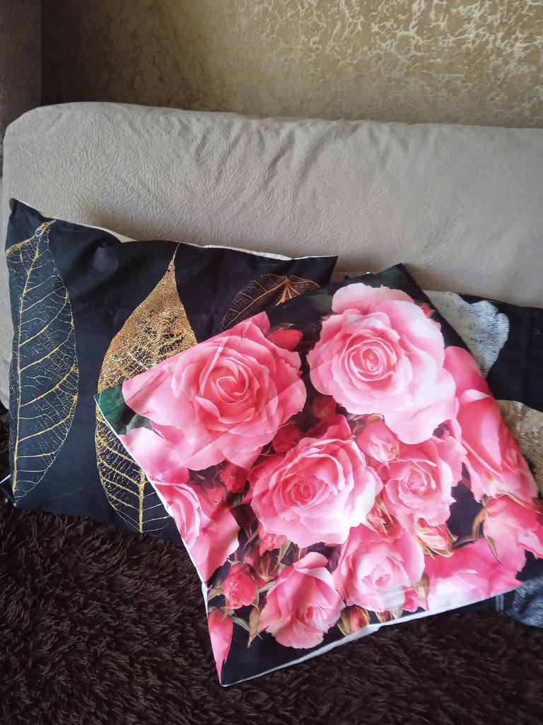 Заказала три наволочки в одном стиле, пришло чудо "в розовых розочках"" , не советую.... Золотистый цвет, в реале, просто жёлтый. Фото и реальность не соответствуют.