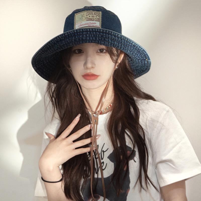 Американские ретро-нашивки на шнурке-ведра для женщин, весна и лето, путешествия, универсальные солнцезащитные кепки с большими полями из денима для мужчин
