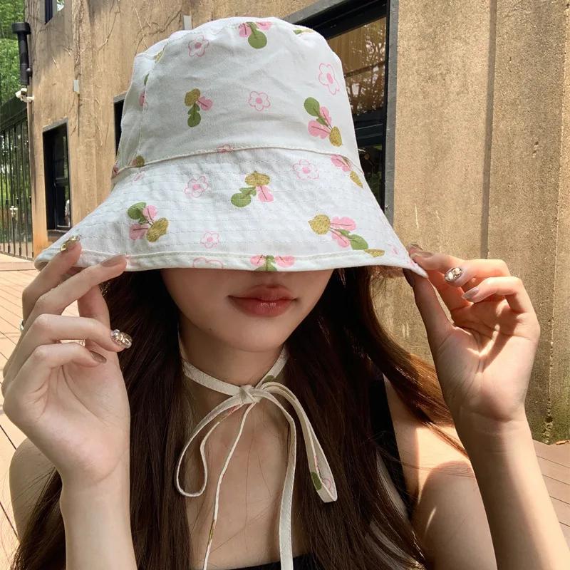 Корейская версия милой цветочной двухсторонней панамы для летних путешествий, защиты от солнца, универсальной женской кепки с маленьким ремешком