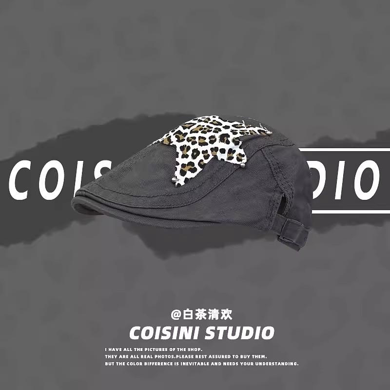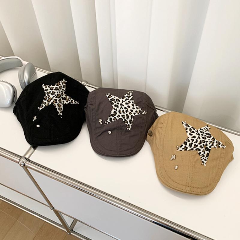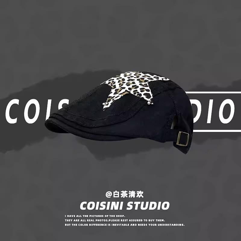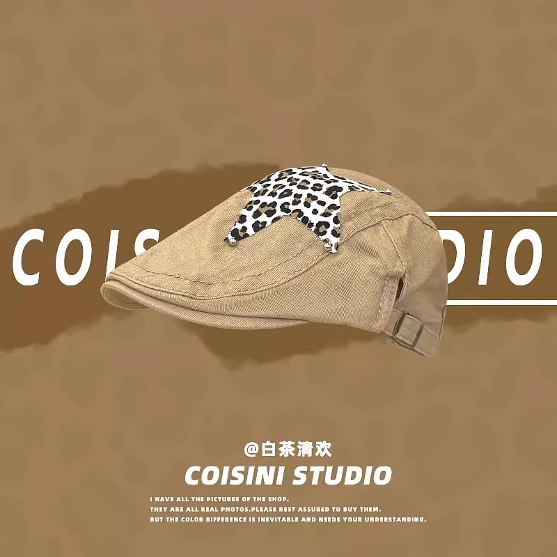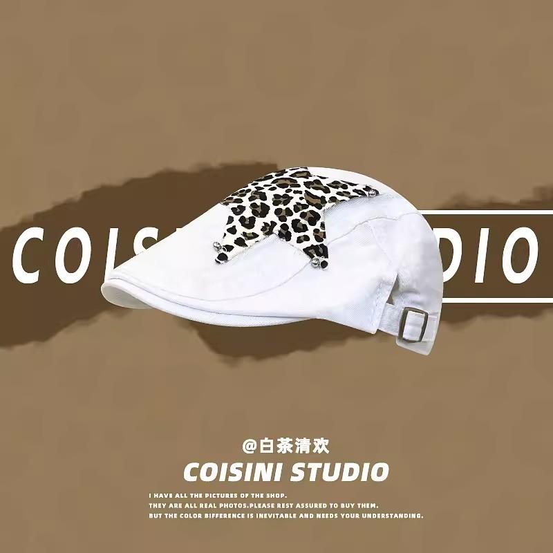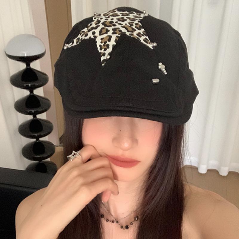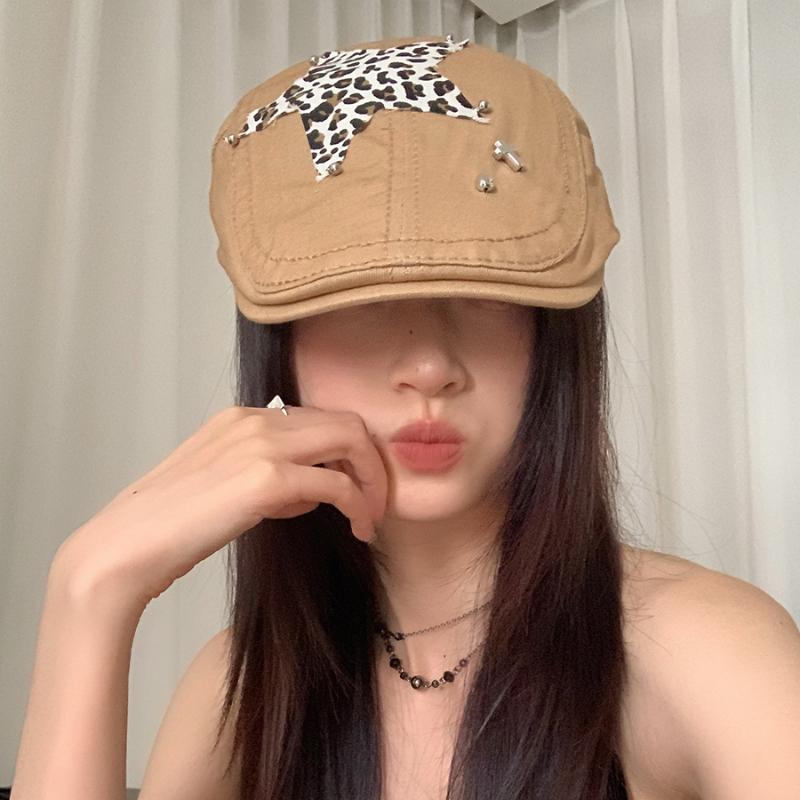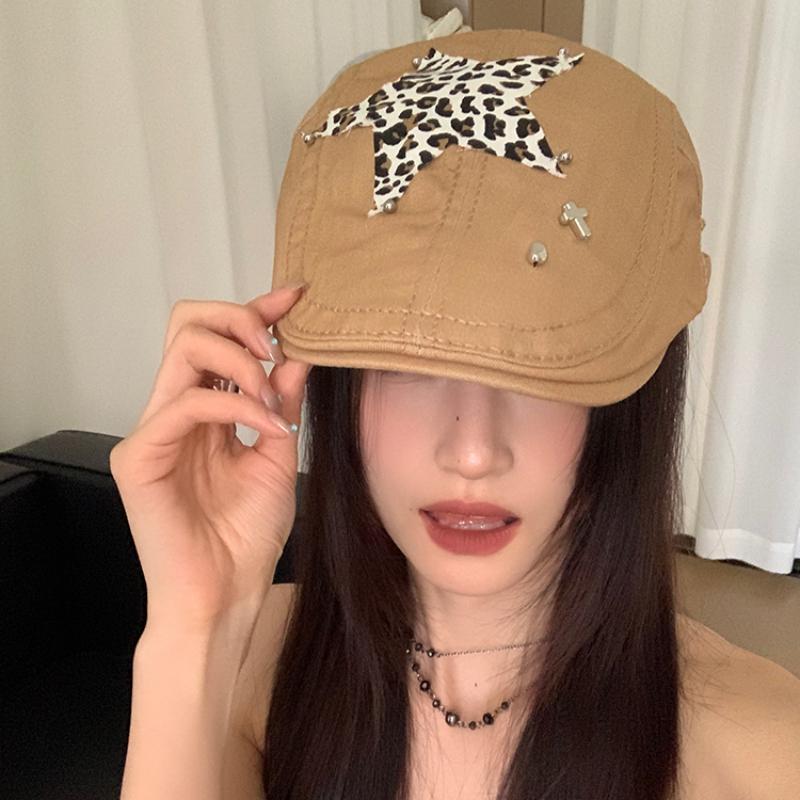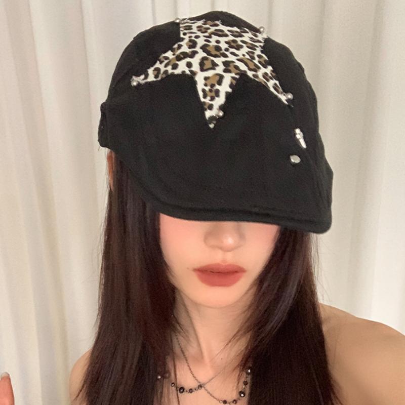 Американские ретро-береты в стиле Babe Y2k, летние универсальные модные леопардовые наклейки с дизайном, солнцезащитные шляпы для женщин