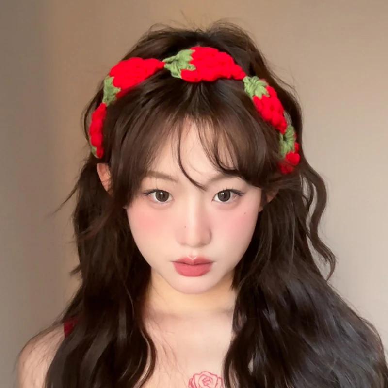Милые и симпатичные повязки на голову с клубникой ручной работы Ins Style для женщин, весенние дорожные универсальные повседневные фото головные уборы, шарфы для волос