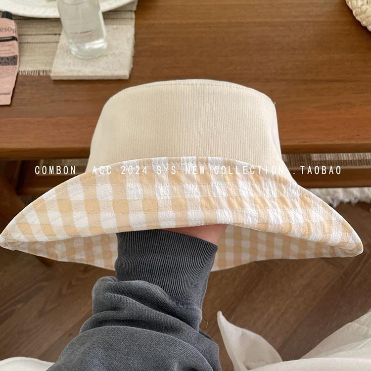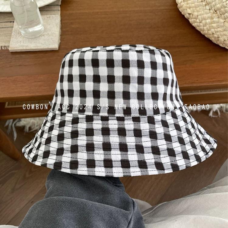 Ins Fresh Plaid Двусторонние Панамы для женщин Весна и лето Открытый Повседневный Универсальный Солнцезащитный Простые мужские кепки