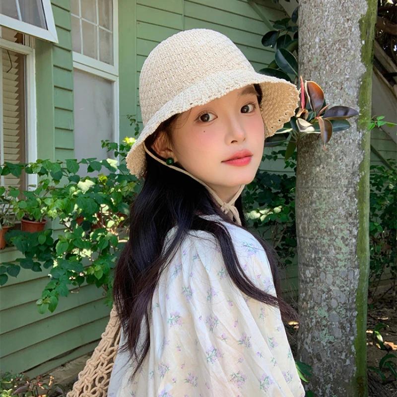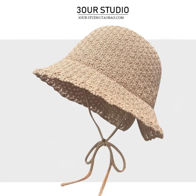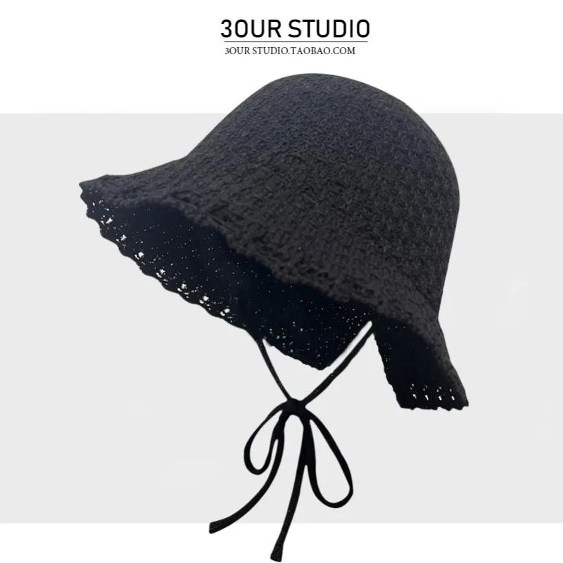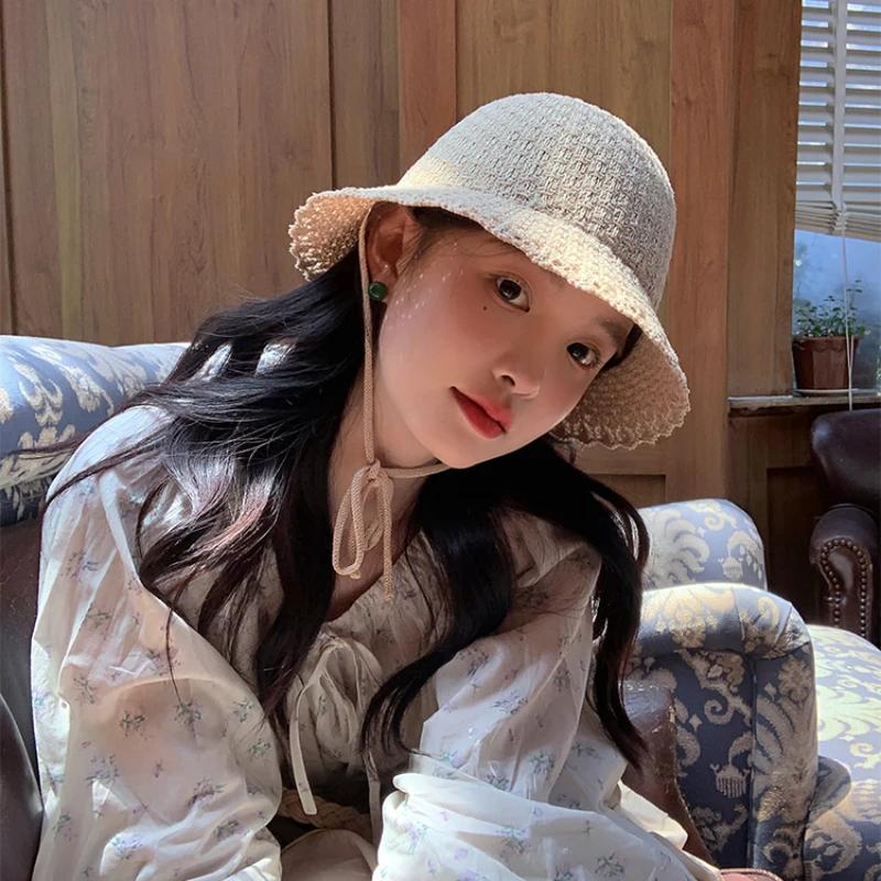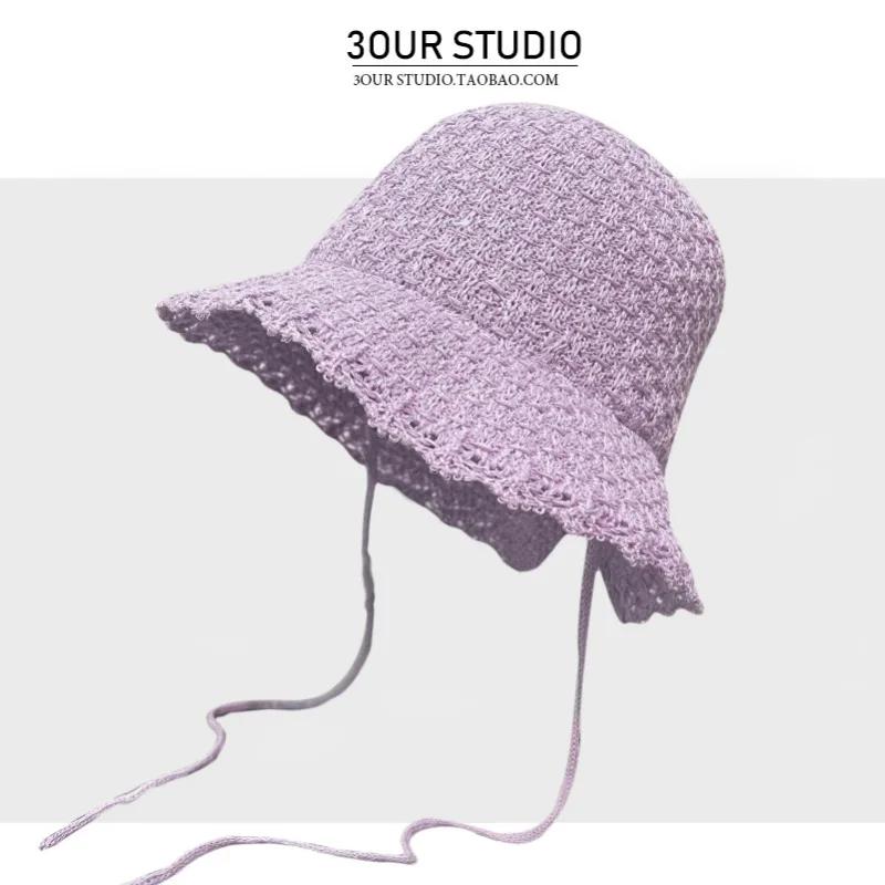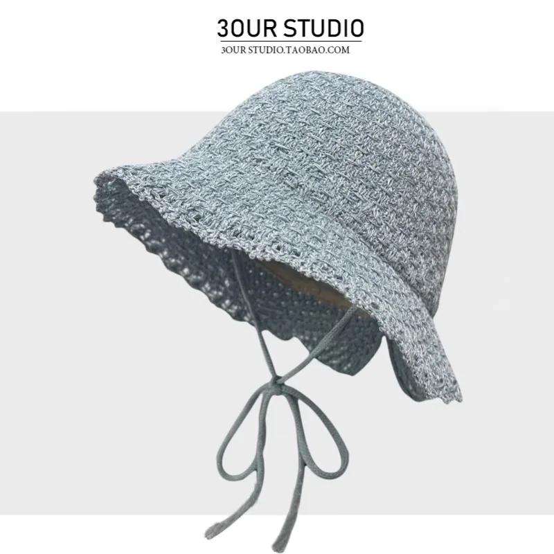 Корейские свежие вязаные панамы на шнуровке для женщин весна-лето Mori универсальные солнцезащитные милые синие шапки Loli