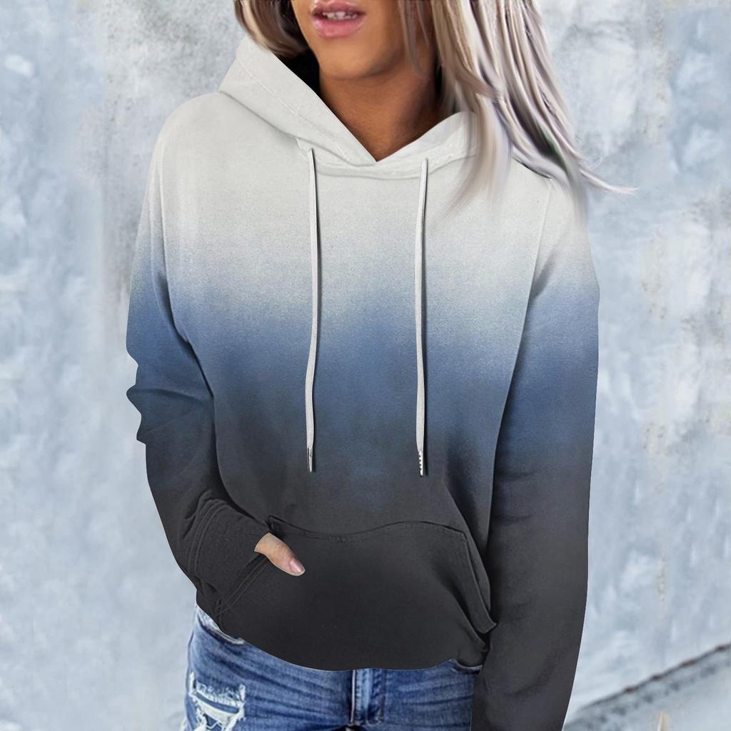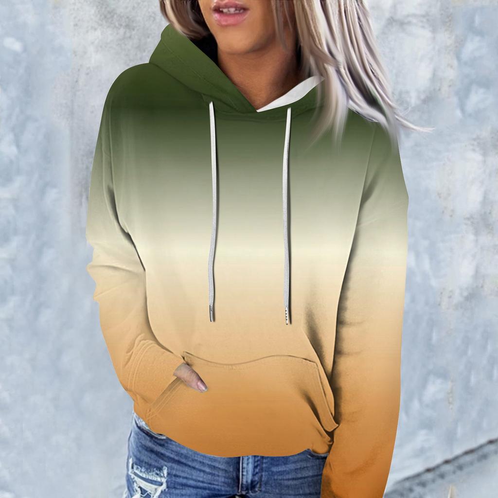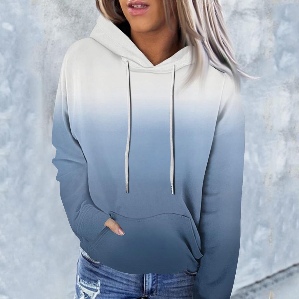 Женская модная повседневная толстовка с капюшоном и градиентным принтом с длинным рукавом