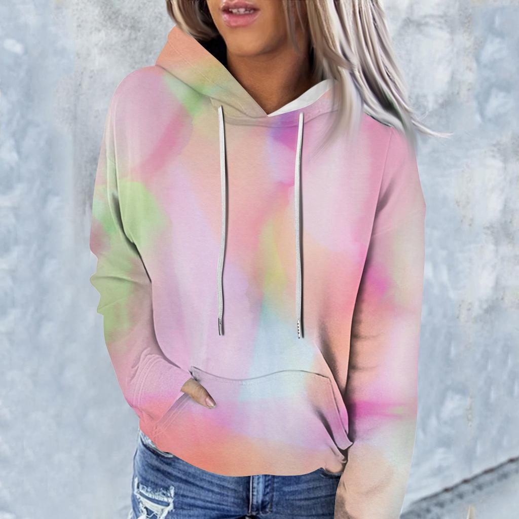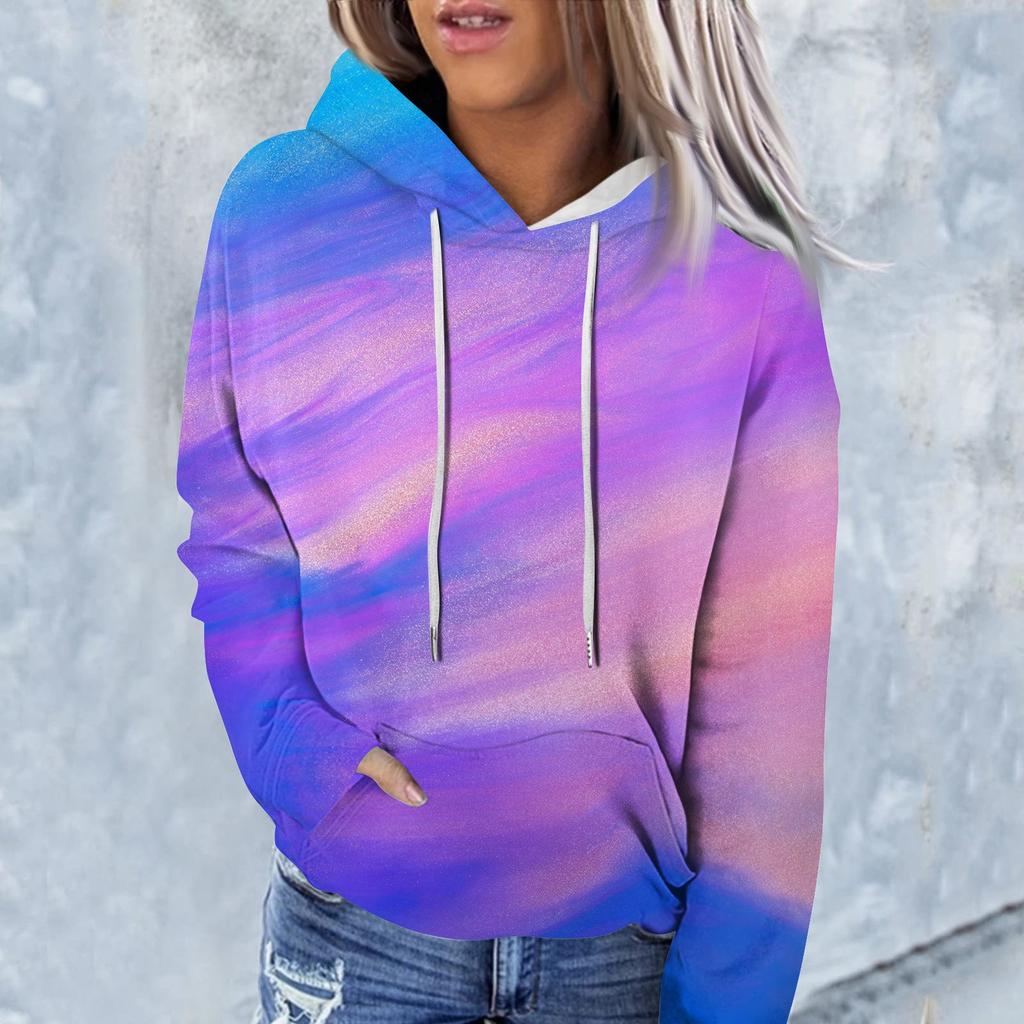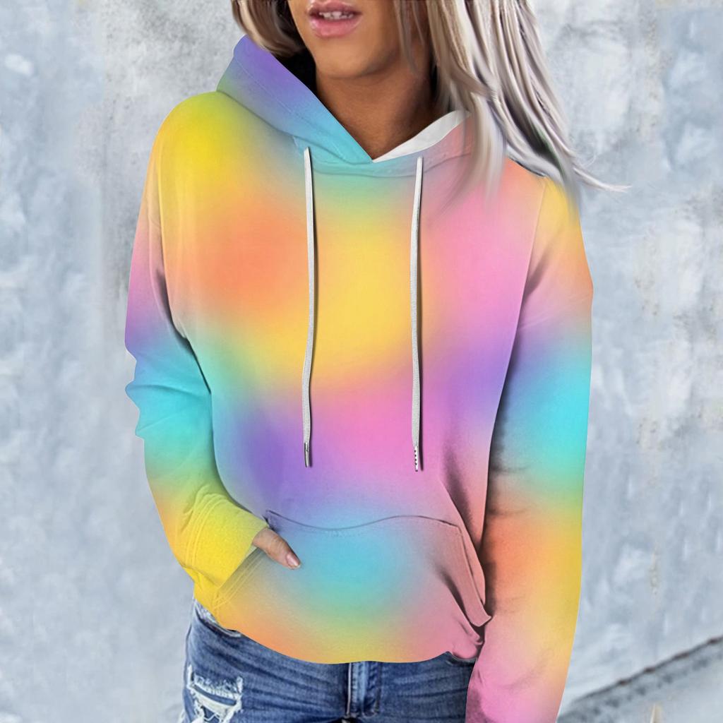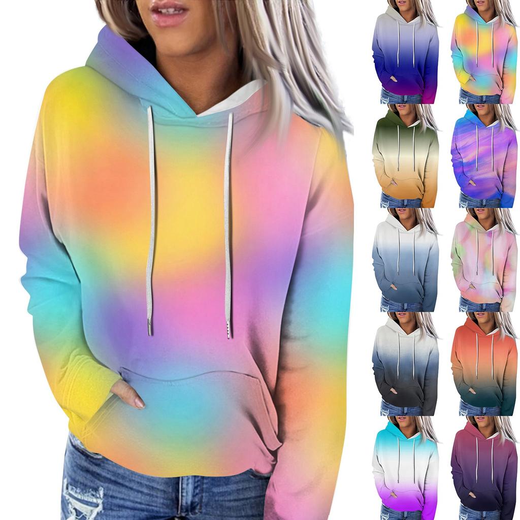 Женская модная повседневная толстовка с капюшоном и градиентным принтом с длинным рукавом