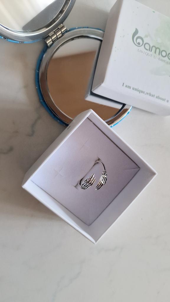 Неординарное, стильное, классное 🔥🤘 Серебряное колечко 💍🫶 от Bamoer. Скоро Helloween 🤫🤭 надо бы сходить в клуб, как в старые добрые времена! Мне нравится тематика рук скелета, обнимающих мой пальчик. Я без ума ❤️ от дизайнеров, работающих с ювелирными изделиями Bamoer, мне нравится большинство украшений этого бренда. Эти ювелирные изделия созданы с душой 🥰 И кстати, украшения Бамуер прекрасно носятся 👍👍👍 Я люблю легкий эпотаж 🤭 Такое колечко не останется без внимания 👌 Ручки скелета очень изящные, они красиво обнимаю пальчик. Такое кольцо не имеет размера, оно легко гнется и разжимается, поэтому подходит на любой пальчик, я буду носить на среднем. Колечко серебряное, есть проба S925.