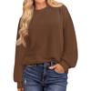 Женская мода однотонный нитка длинный рукав свободный круглый вырез пуловер топ