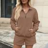 Женский однотонный свитер с воротником-стойкой и застежкой-молнией, длинный рукав, спортивные шорты, домашняя пижама