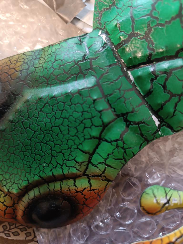 Красивый ,яркий геккон. При упаковке видимо решили сэкономить место и согнули в области шеи. С большим трудом расправила, но краска на месте сгиба облезла. Такую красоту испортили плохой упаковкой.
