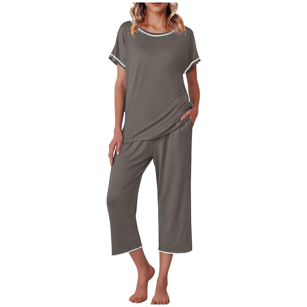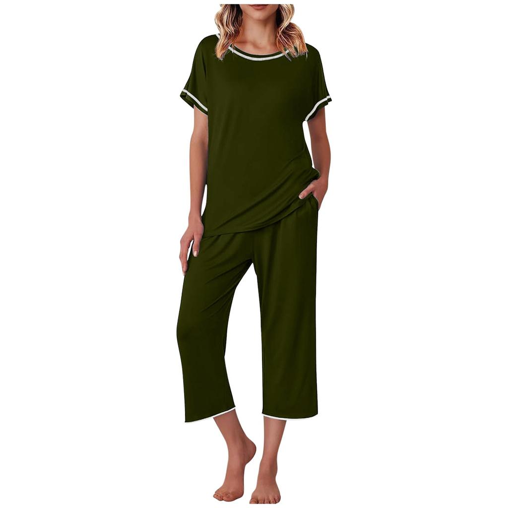 Женский комплект, однотонная пижама с коротким рукавом, капри, пижама, повседневный комплект из двух предметов