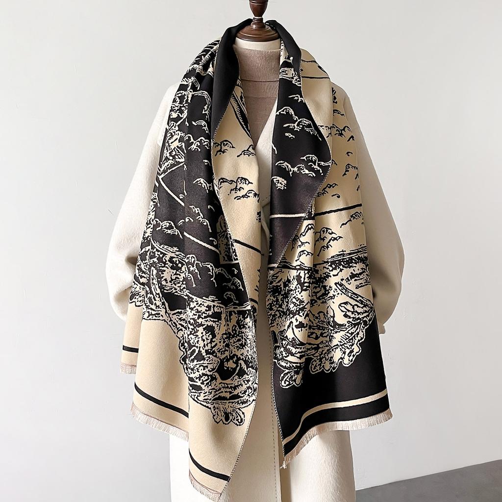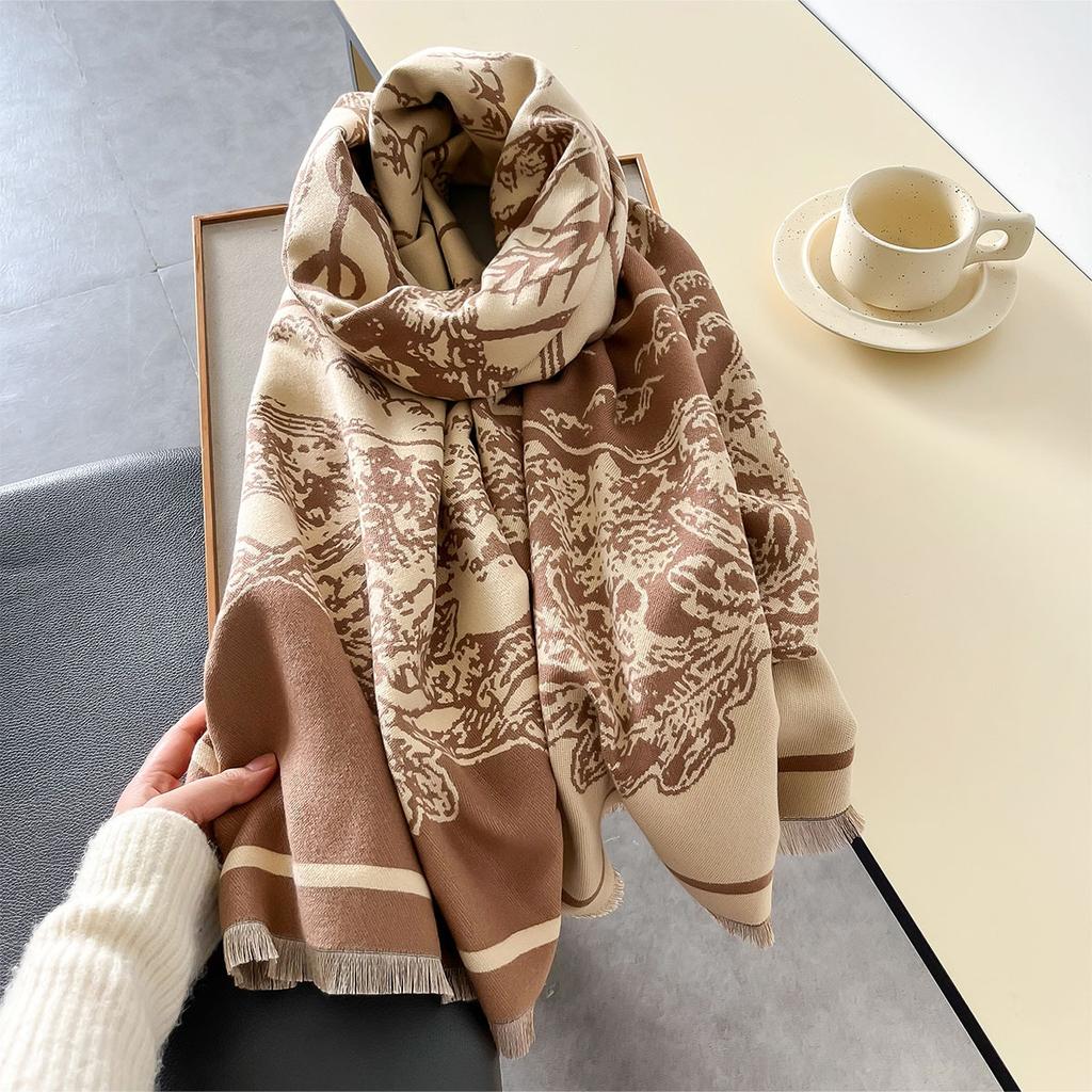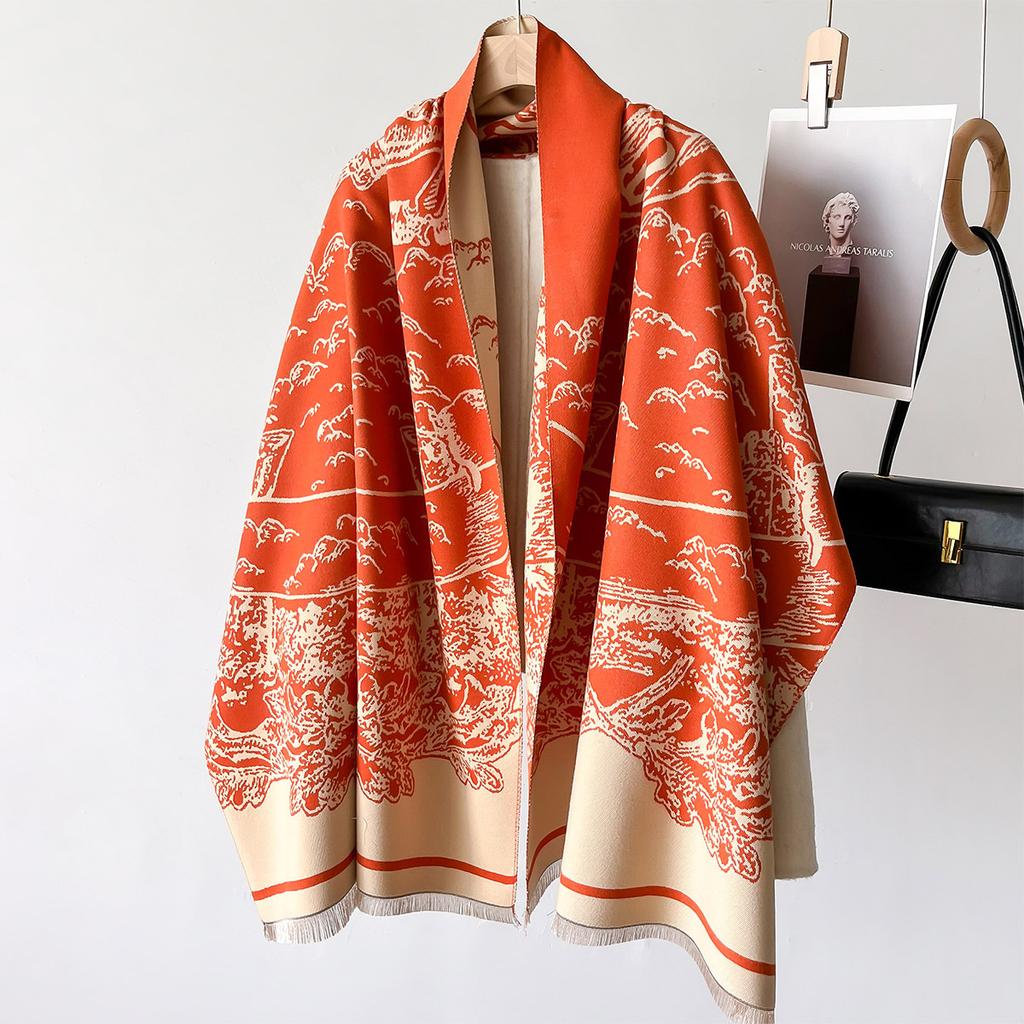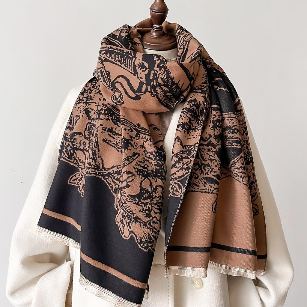 Зимний шарф 2024 года для женщин, роскошный кашемировый шарф, пашминовые женские шали и палантины с ретро-винтажным принтом, роскошные шарфы, одеяло