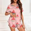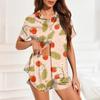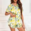 Женская шелковая пижама с пуговицами, домашняя одежда, принт со звездами, короткий рукав, атласный пижамный комплект из 2 предметов