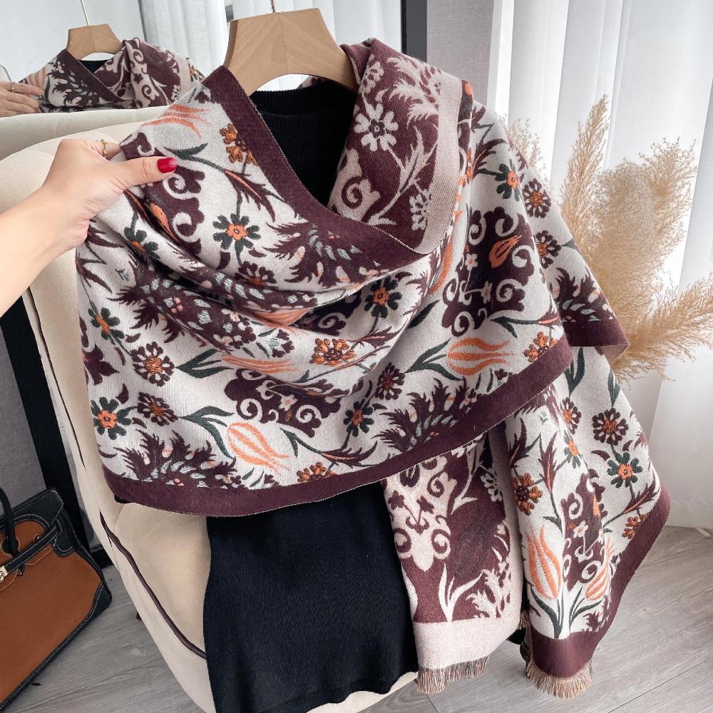 2024 Зимний теплый шарф кашемировый женский шаль накидка толстое одеяло эшарп пончо палантин пашмина для женщин