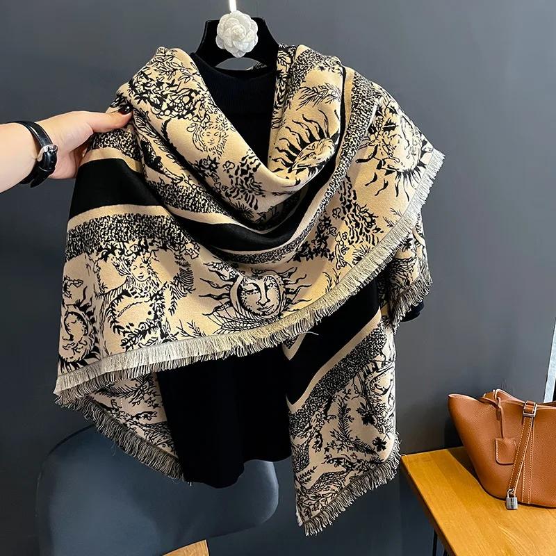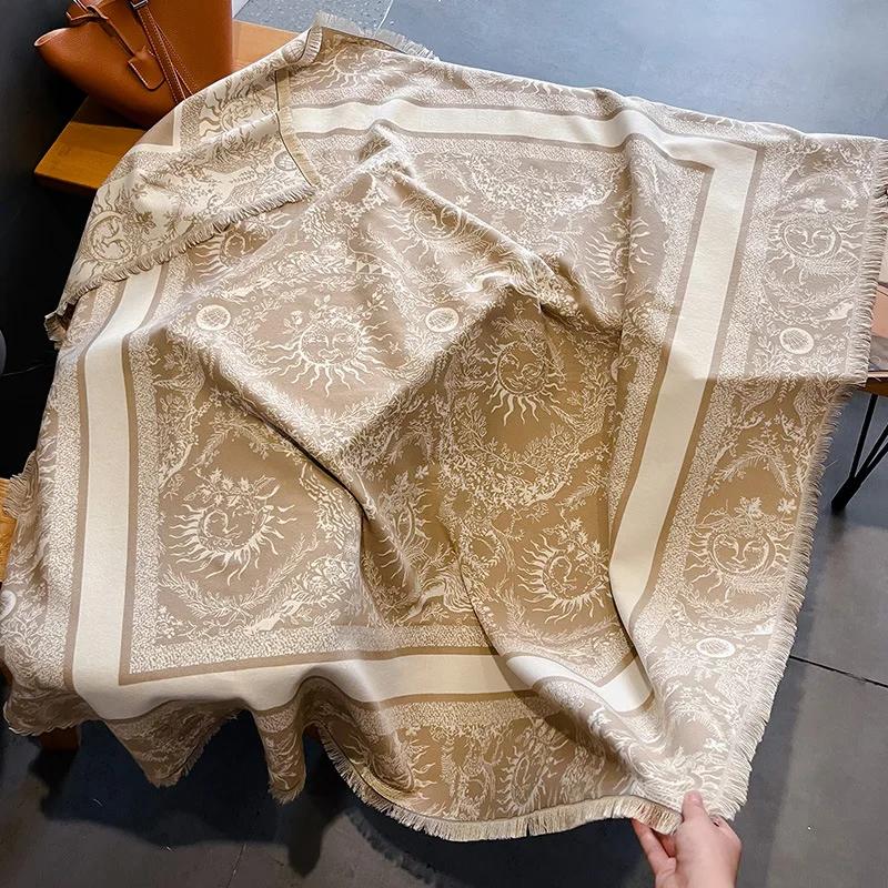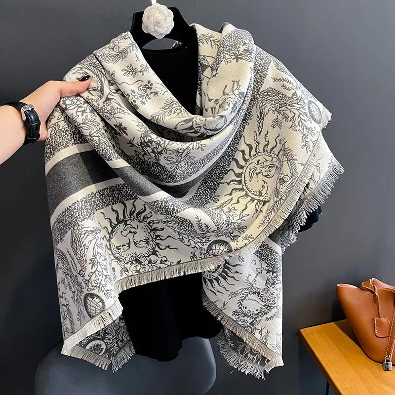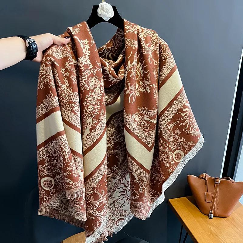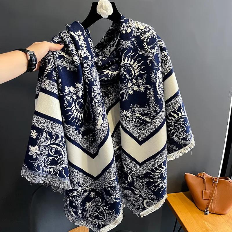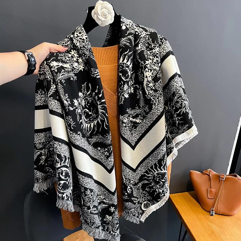 Роскошный брендовый кашемировый женский цветочный шарф, зимняя теплая шаль и накидка, бандана, пашмина, женский платок, квадратное толстое одеяло 2024