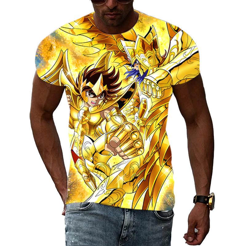 Золотая тема аниме Saint Seiya Крутая 3D-печать фотографий Эстетическая личность Мужская и женская футболка с круглым вырезом и короткими рукавами