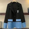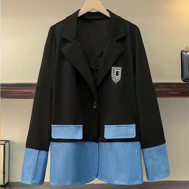 Ковбойский сращивающийся блейзер женский повседневный свободный лоскутный джинсовый большой размер пальто поло воротник длинный рукав куртка новая мода осень