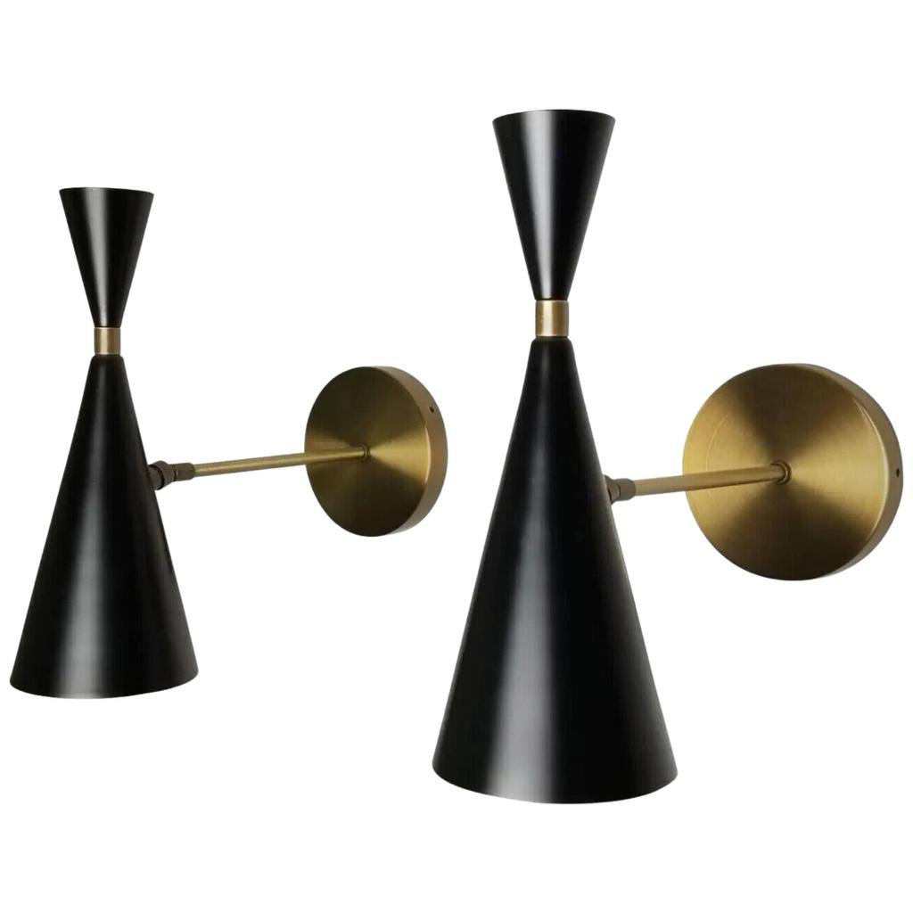 Современная итальянская настенная лампа для чтения 1950-х годов из бронзы и эмалевых настенных бра