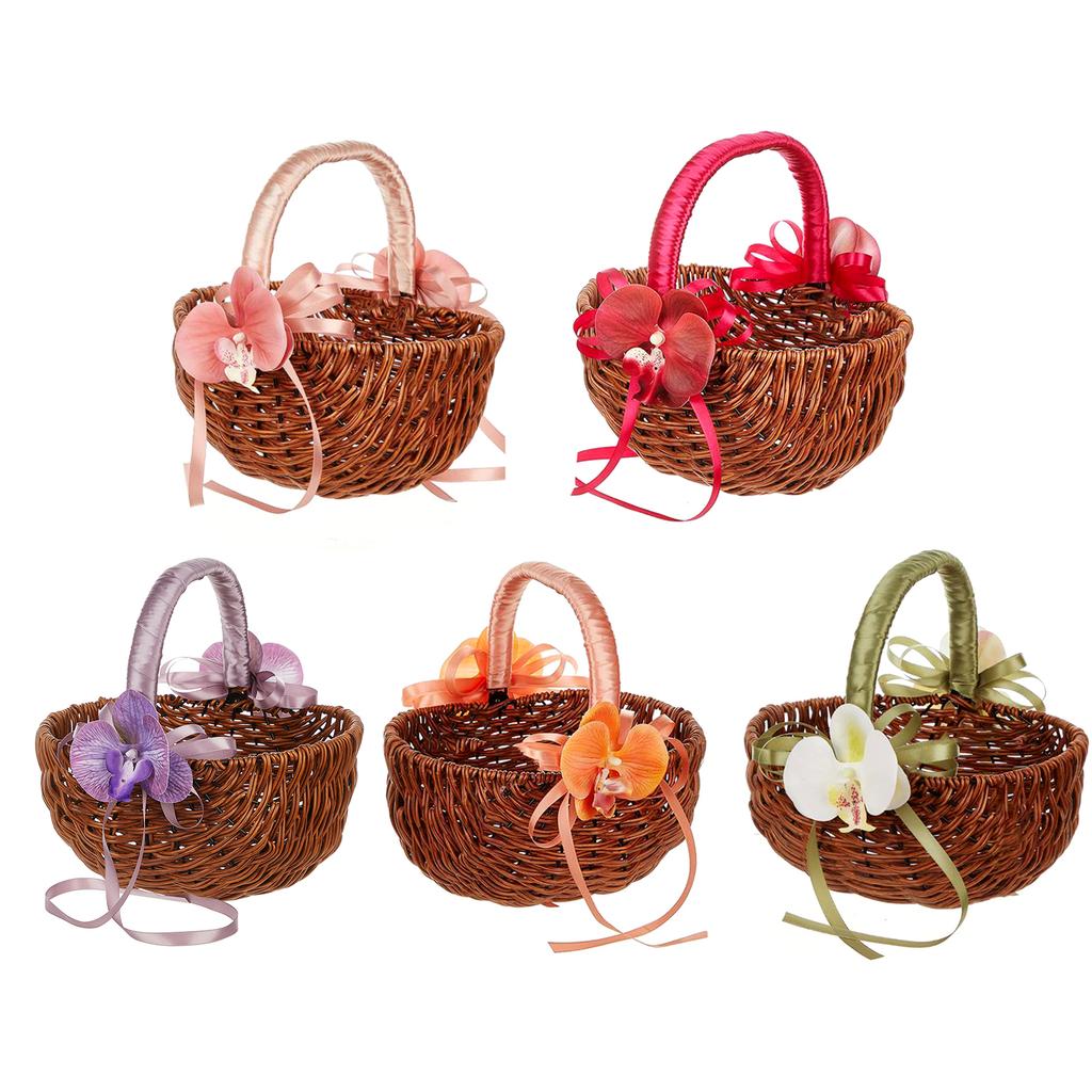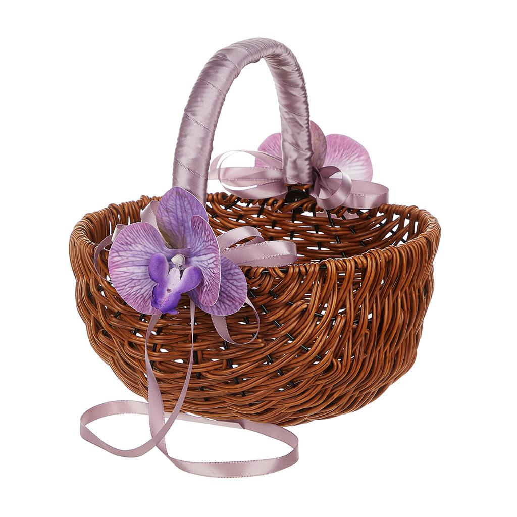 Украсьте свою свадьбу корзиной для девочек-цветочниц из ротанга, украшенной жемчужной ручкой и лентой, которая придаст элегантный штрих вашему особому дню.