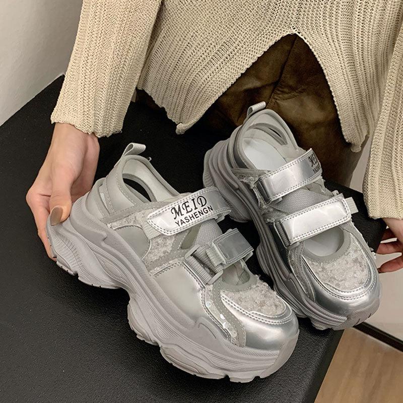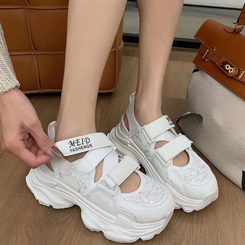 Спортивные сандалии Baotou, женские дырчатые туфли, летняя новая полая дышащая толстая подошва, увеличивающая рост, повседневная обувь для пап