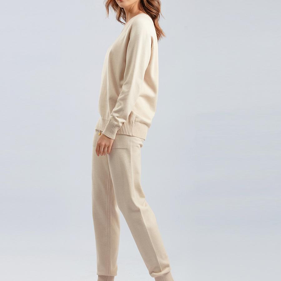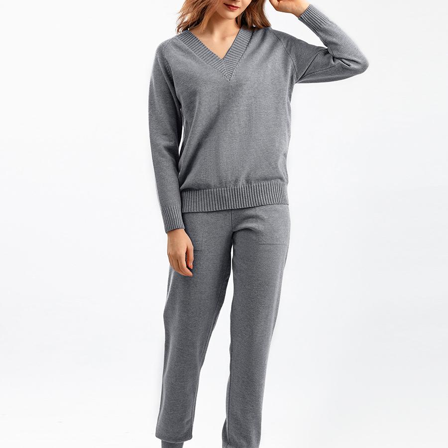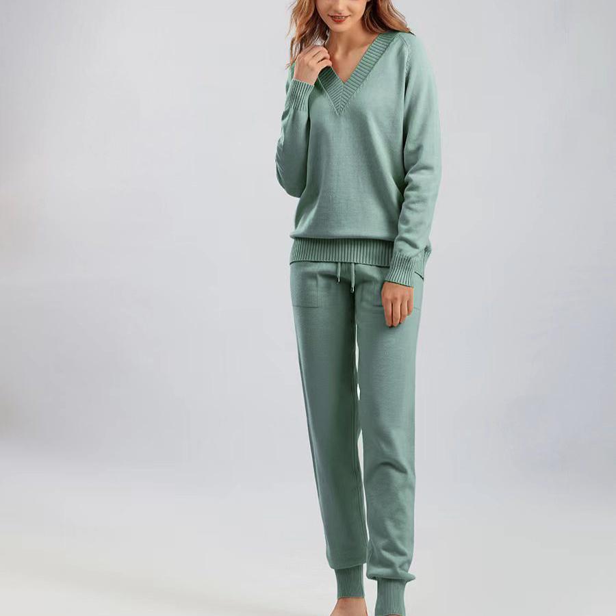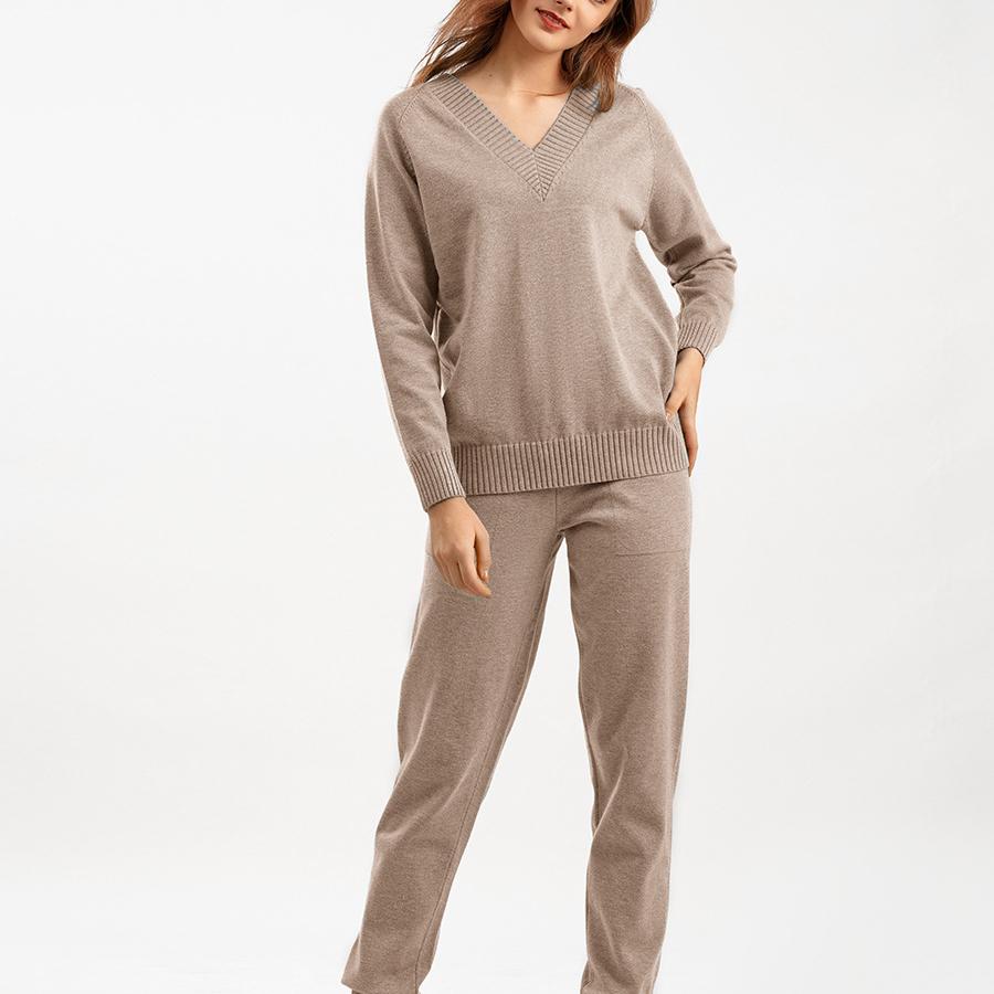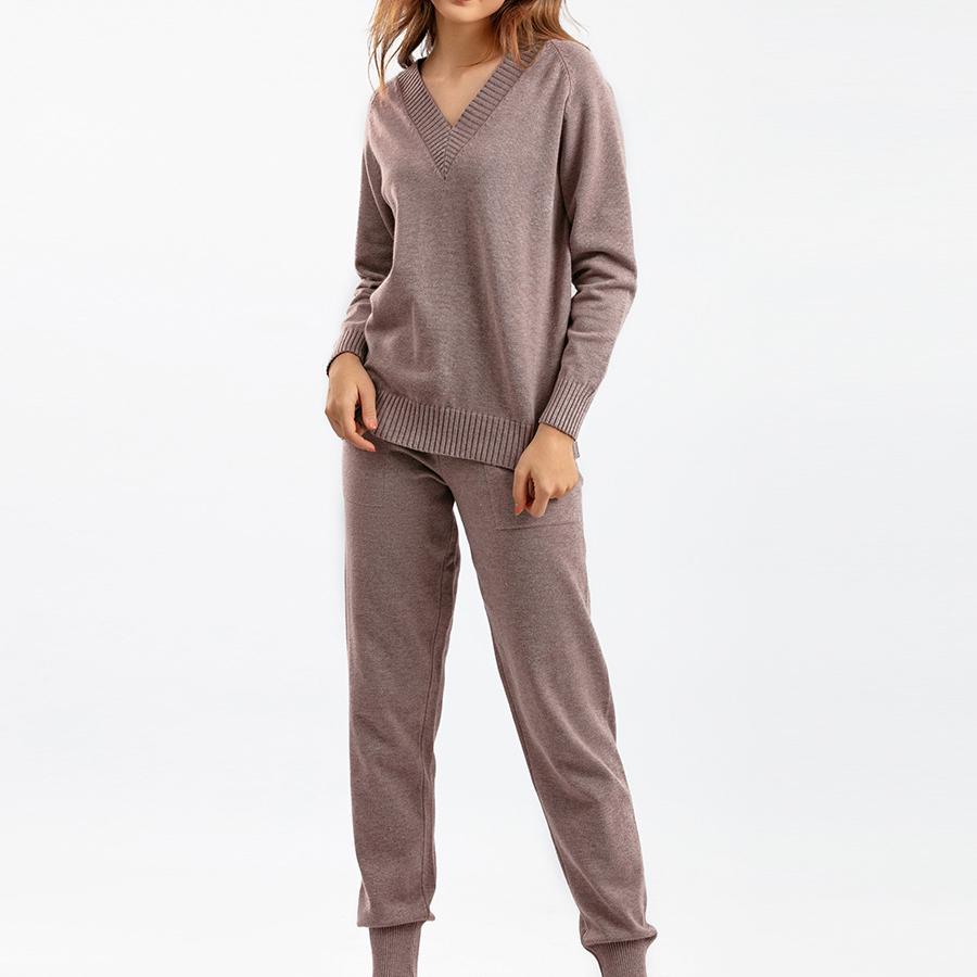 Женский трикотажный пуловер из двух частей, осенне-зимний трикотажный комплект из шаровар и брюк, повседневный комплект из двух частей, свитер, наряды