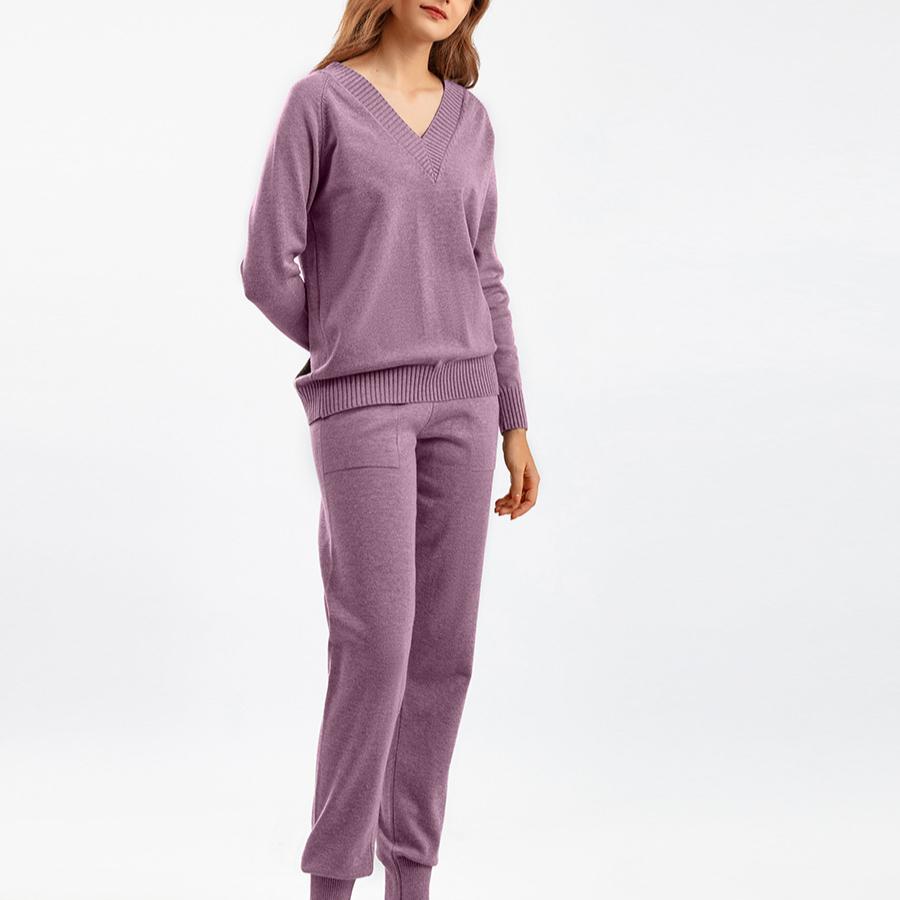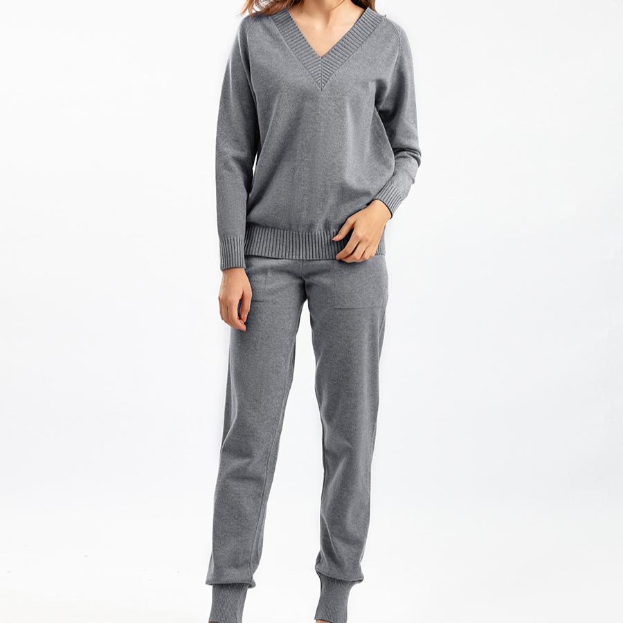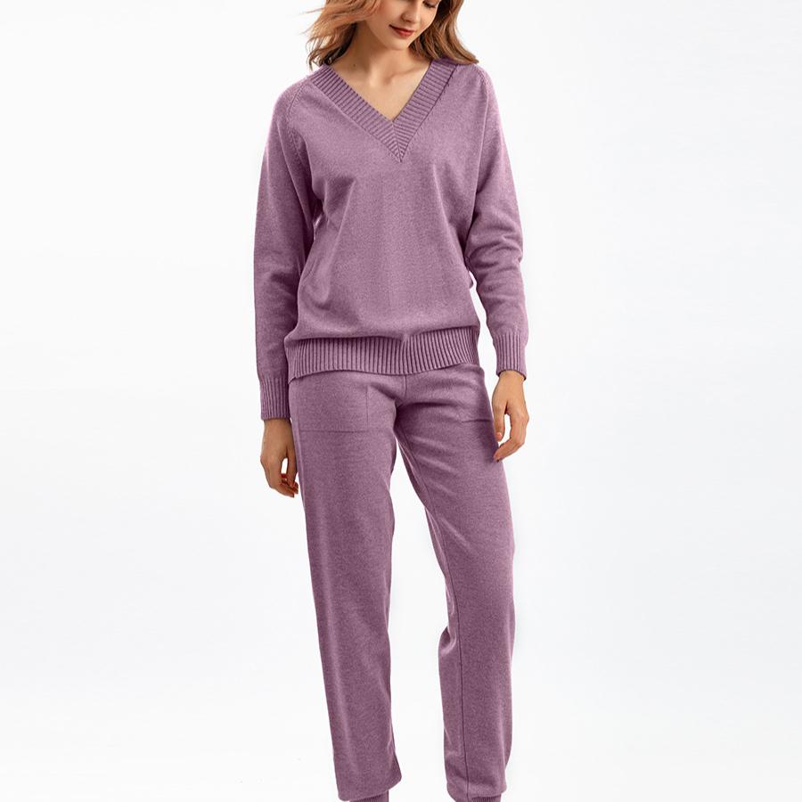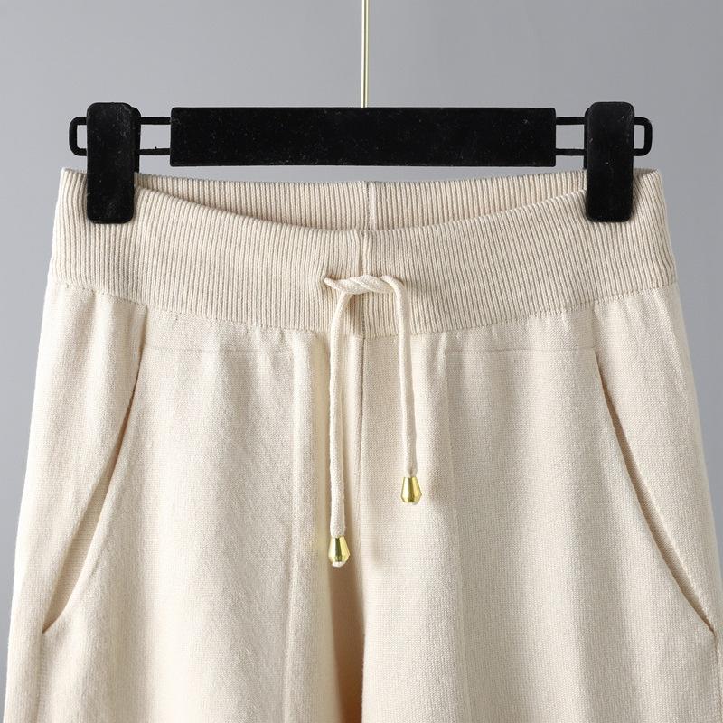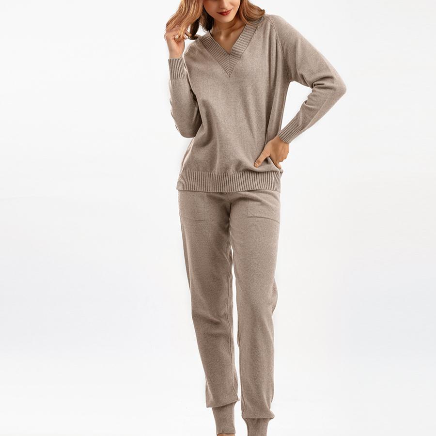 Женский трикотажный пуловер из двух частей, осенне-зимний трикотажный комплект из шаровар и брюк, повседневный комплект из двух частей, свитер, наряды