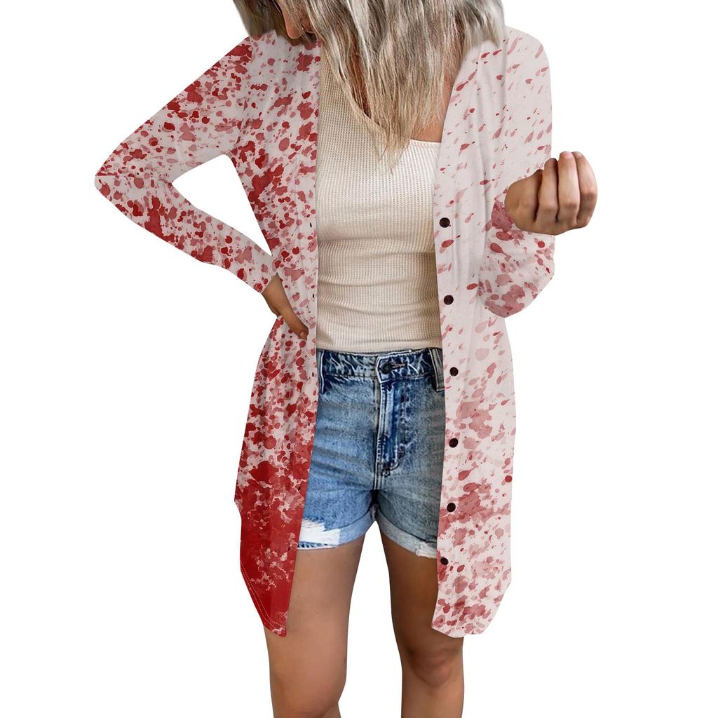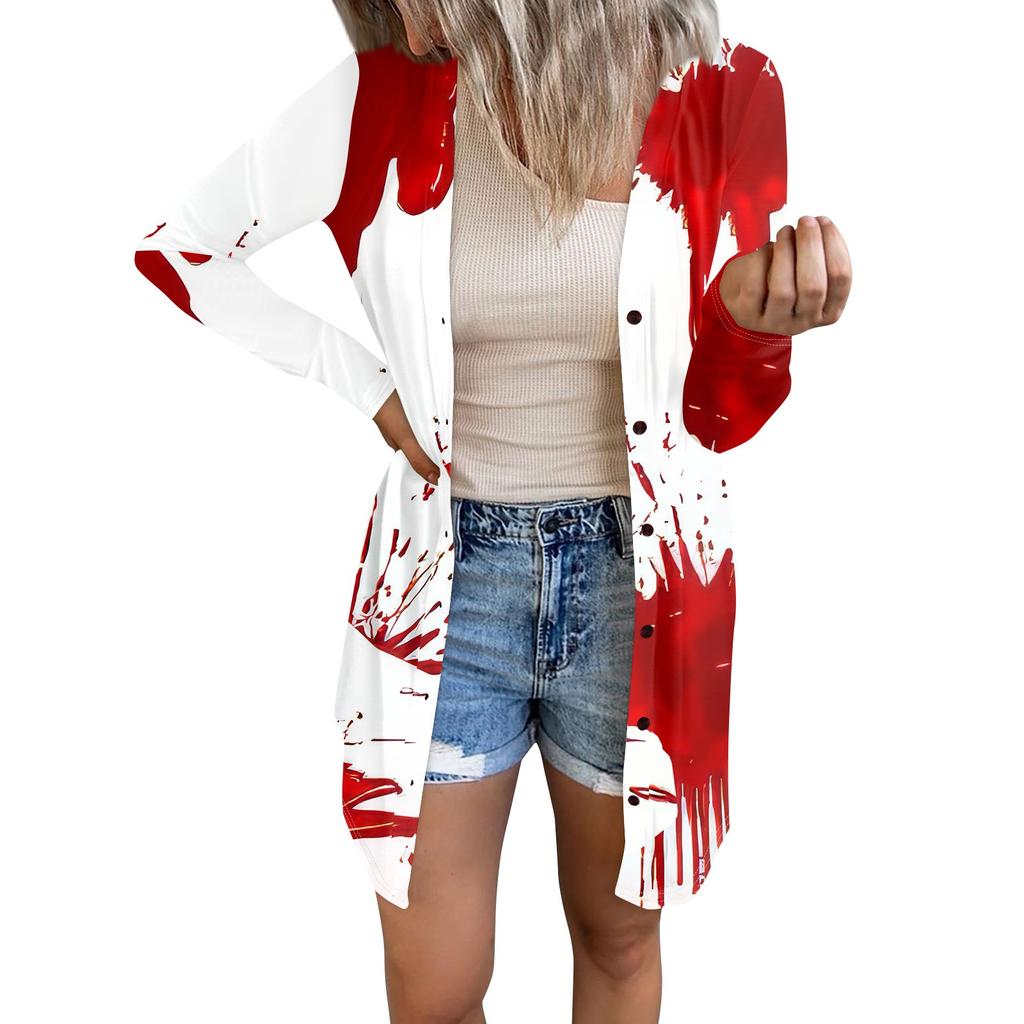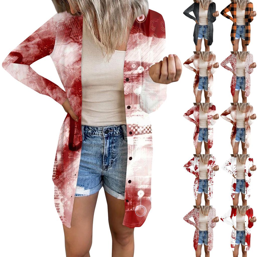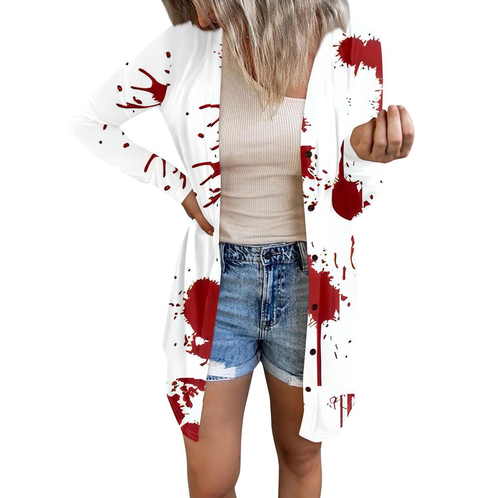 Женская повседневная модная удобная свободная куртка-кардиган с длинным рукавом и принтом на Хэллоуин