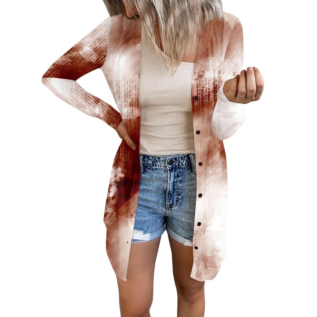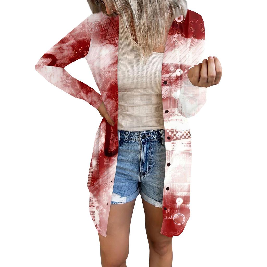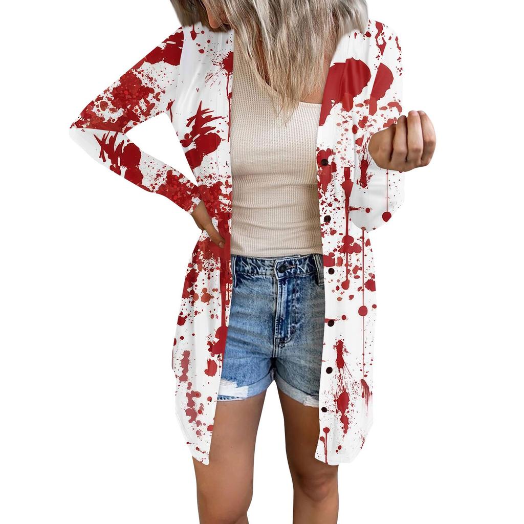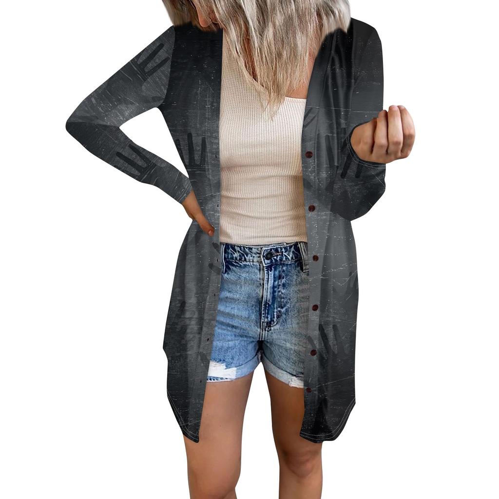 Женская повседневная модная удобная свободная куртка-кардиган с длинным рукавом и принтом на Хэллоуин