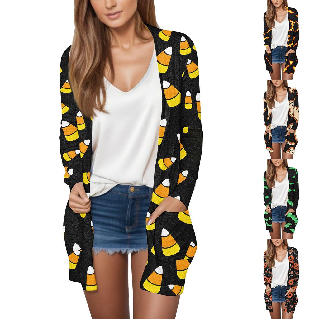 Женская мода, повседневный кардиган с принтом на Хэллоуин, средней длины, куртка, пальто — купить товар онлайн с бесплатной доставкой до всему миру!