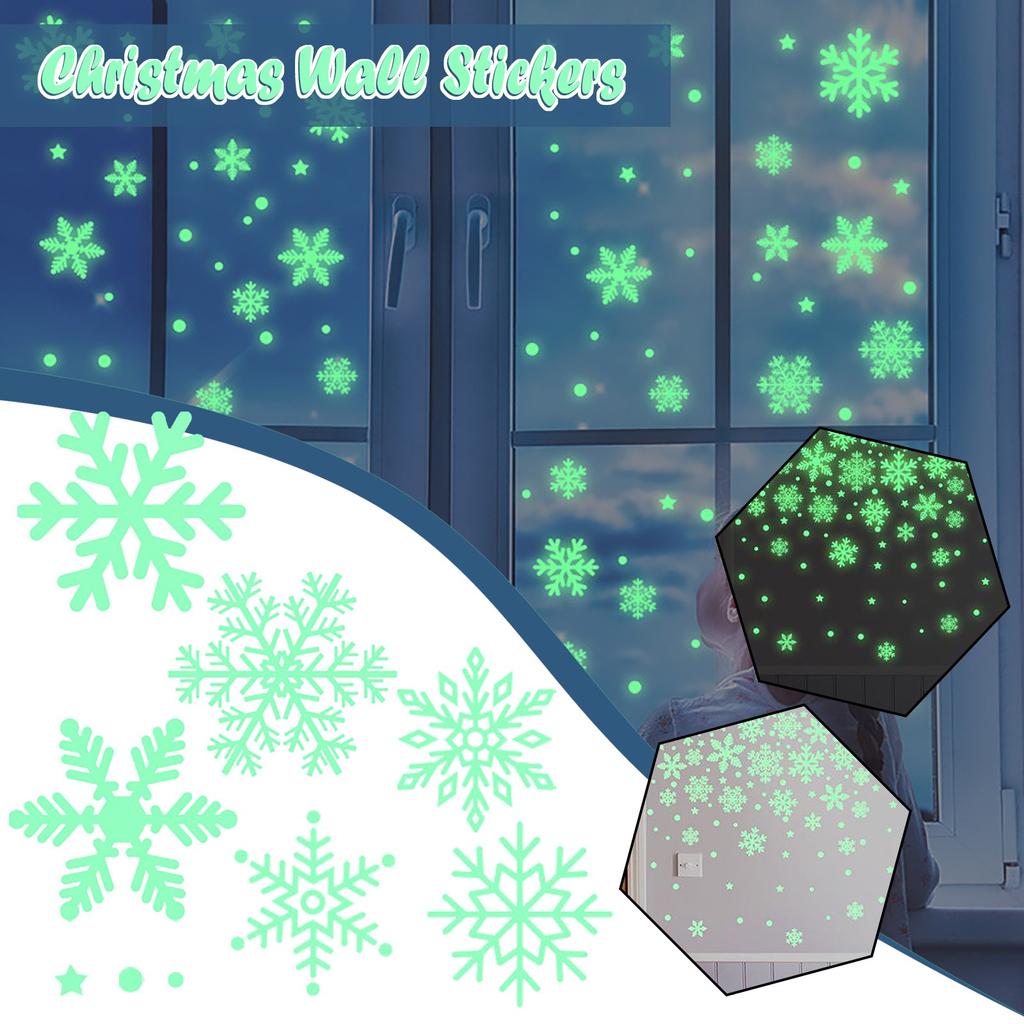 Рождественские светящиеся в темноте наклейки на стену со снежинками Рождественские наклейки со снежинками
