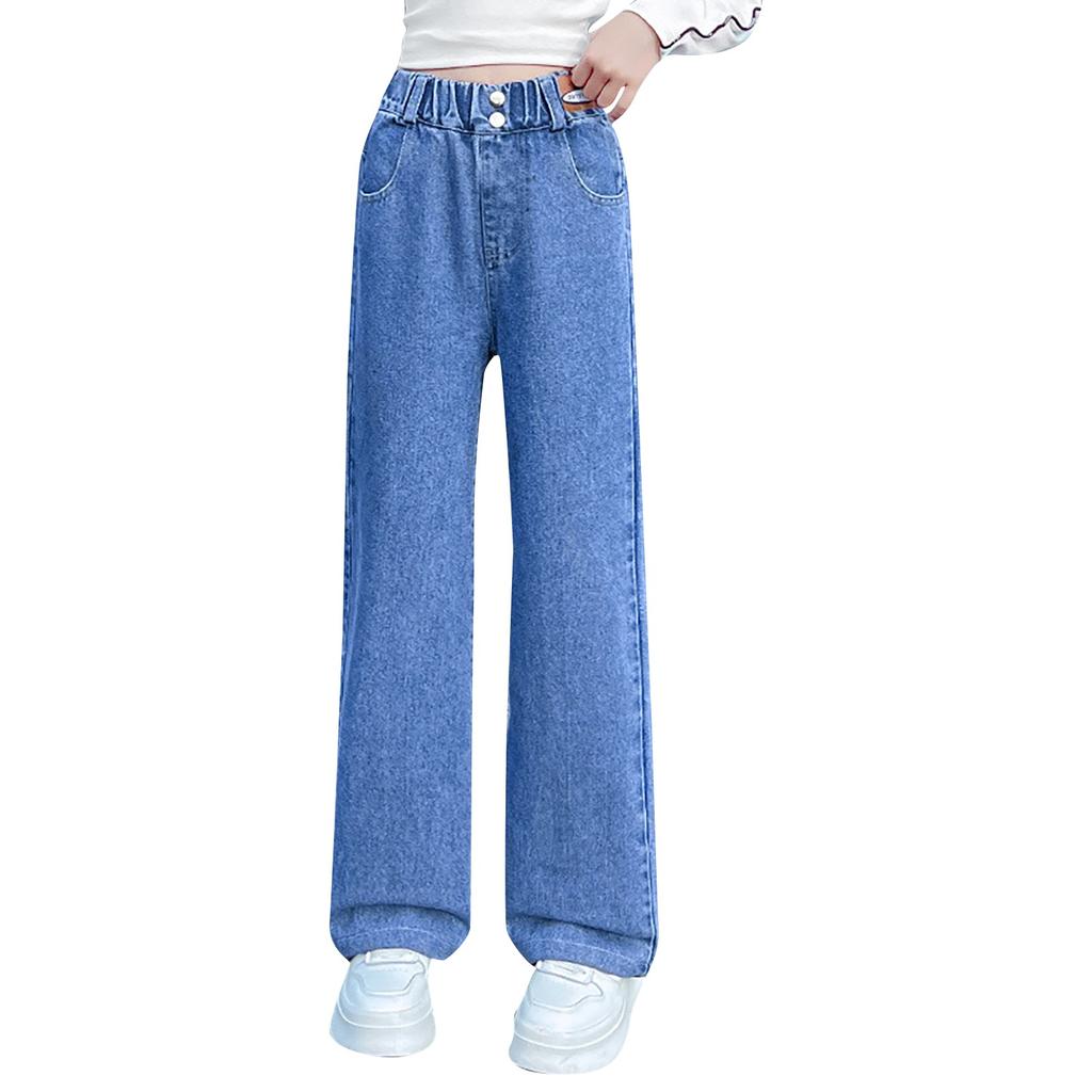 Детские джинсы, весенне-осенние стили, детские осенние широкие брюки, свободные брюки