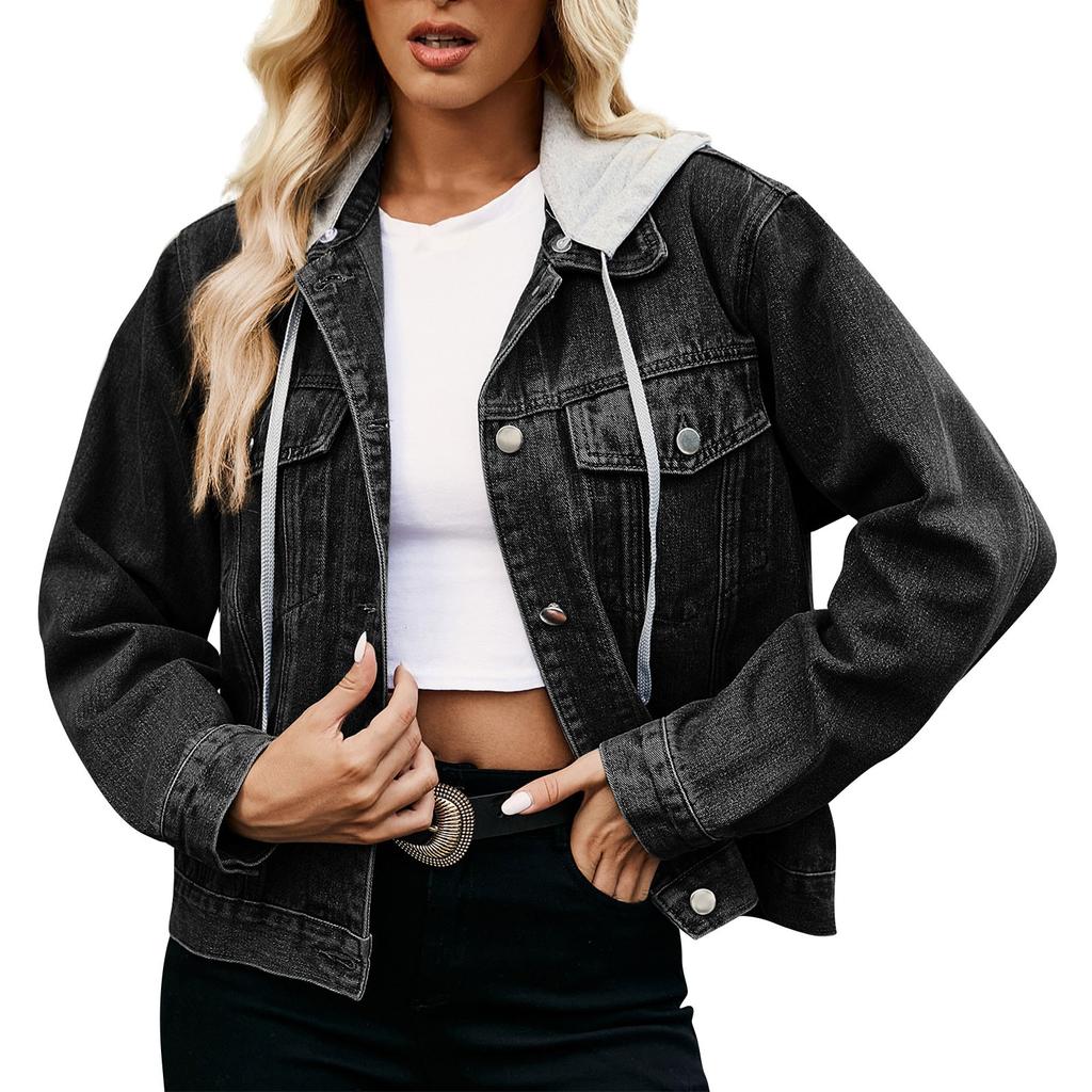 Женская мода Свободная джинсовая короткая куртка Куртка Топ с длинными рукавами Женская