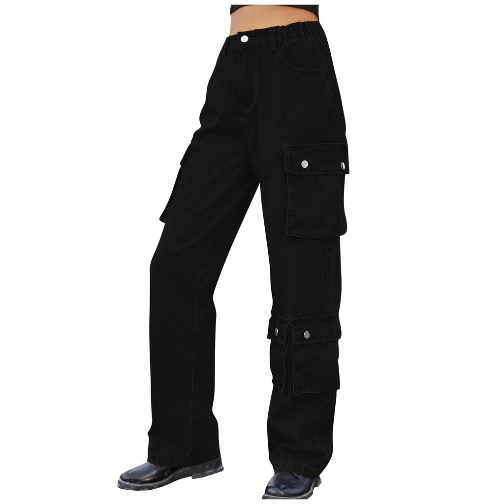 Женские модные повседневные джинсовые брюки-карго с эластичной резинкой на талии и карманами
