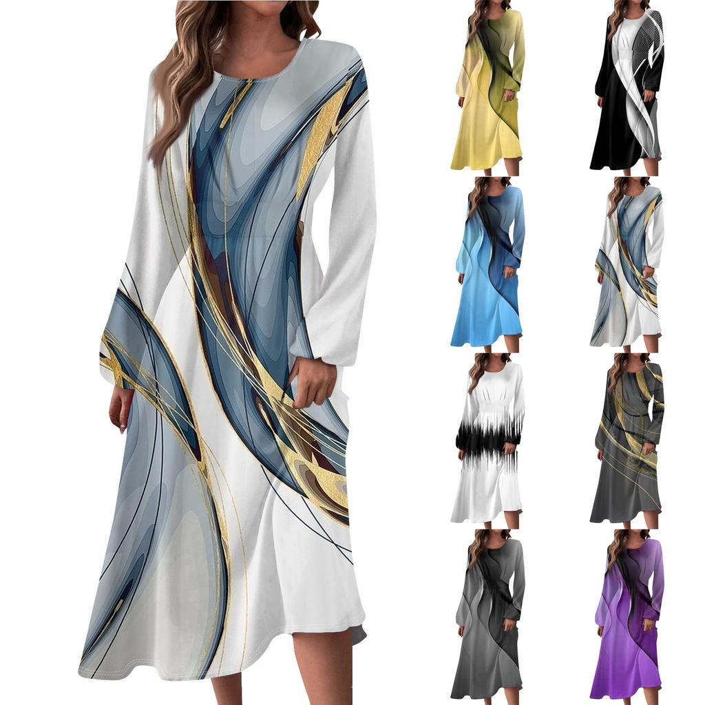 Женское осенне-зимнее повседневное модное платье с круглым вырезом и длинным рукавом с принтом — купить товар онлайн с бесплатной доставкой по всему миру!