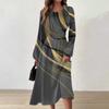 Женское осенне-зимнее повседневное модное платье с круглым вырезом и длинным рукавом с принтом