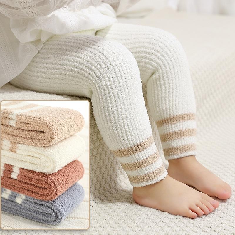 Зимние колготки для девочек, осенние детские термобелье для мальчиков, толстые полосатые штаны, детские теплые милые леггинсы из кораллового флиса, детские аксессуары