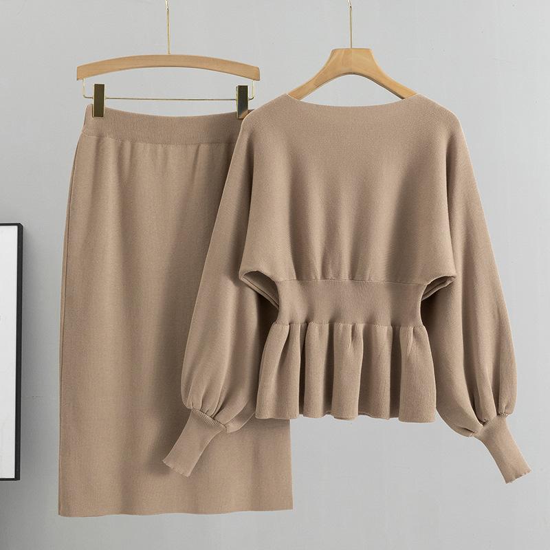 Юбка-фонарик с длинными рукавами и бедрами, женский свитер, весна-осень, большие размеры, стиль знаменитости, темперамент, юбка, костюм