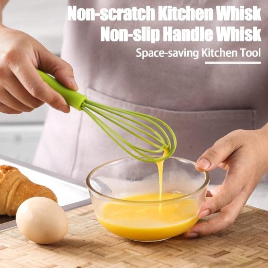 Прочная проволока из нержавеющей стали: Изготовленный из прочной нержавеющей стали, покрытой пищевым силиконом, этот венчик для взбивания яиц обеспечивает долговечность и отсутствие царапин на кастрюлях, сковородках и формах для выпечки.. Более мягкий и эластичный силиконовый материал повышает гибкость для эффективного смешивания, не повреждая посуду.