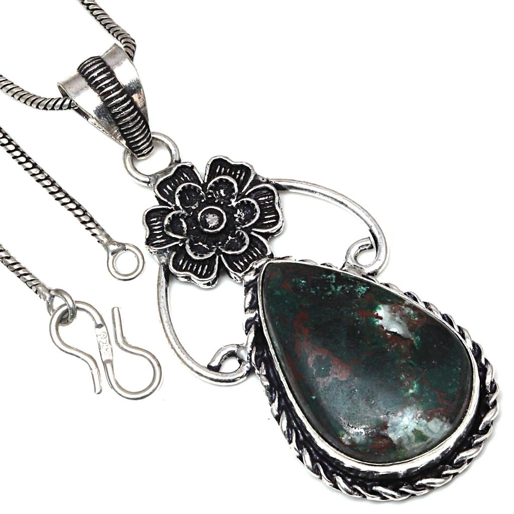 Подвеска из драгоценного камня хризоколла, подарок ручной работы для нее, серебряное украшение 2,5 дюйма