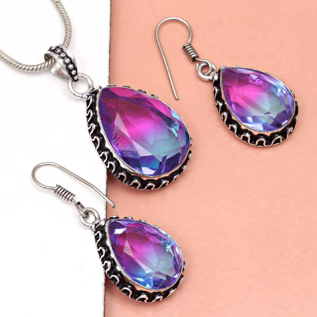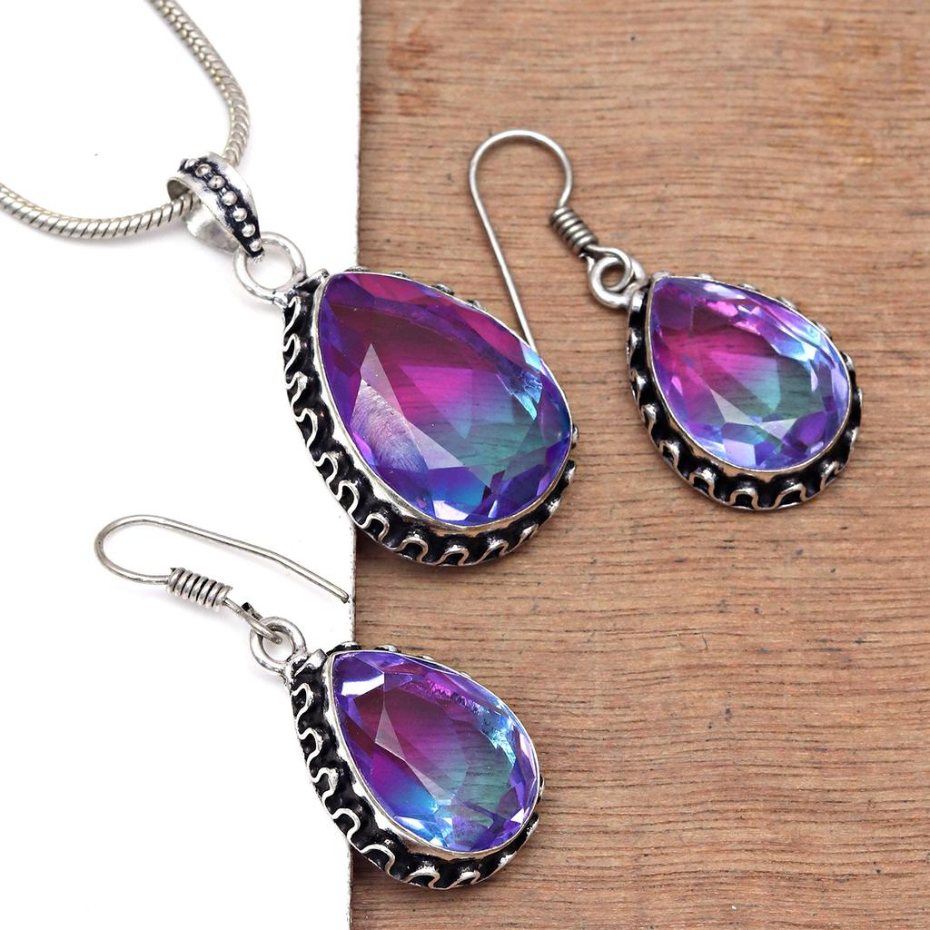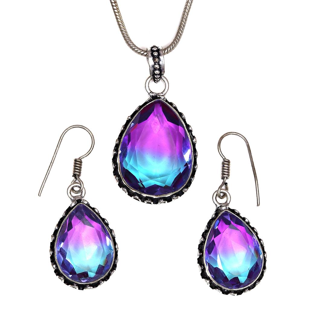 Турмалиновый комплект из драгоценных камней, подарок на свадьбу, двухцветный кулон, серьги, кольцо