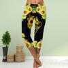 Брюки летние короткие леггинсы укороченные узкие брюки леггинсы больших размеров женские облегающие брюки с принтом 3D желтые подсолнухи и бабочки