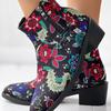 Женские винтажные ковбойские сапоги с принтом, осень-зима, новые ботильоны из искусственной кожи, женские ботильоны на толстом каблуке Chelsea Botines Mujer 202