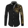Мужские деловые рубашки Мужская классическая рубашка Повседневная уличная одежда Черная золотая печать Рубашка с принтом Дизайн отложной воротник Мужские топы