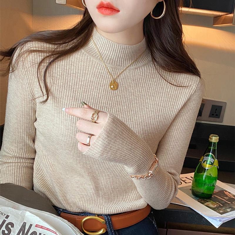 Модный однотонный вязаный свитер с высоким воротом, женский облегающий повседневный элегантный пуловер, свитера на осень и зиму с длинным рукавом, трикотажные свитера, топы 24841