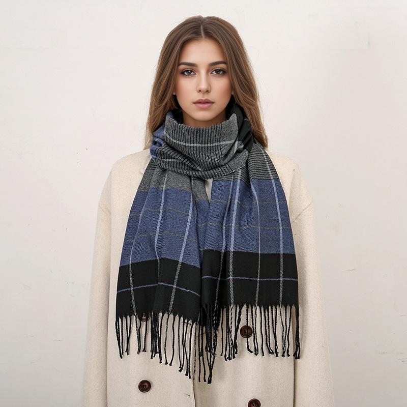 Мягкий и теплый кашемировый шарф в клетку, зимний