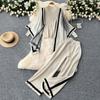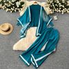 Женские шикарные трикотажные комплекты из двух предметов с рукавами-лодочками, в стиле пэчворк, с круглым вырезом, с разрезом, с высокой посадкой, широкие брюки, модные летние комплекты