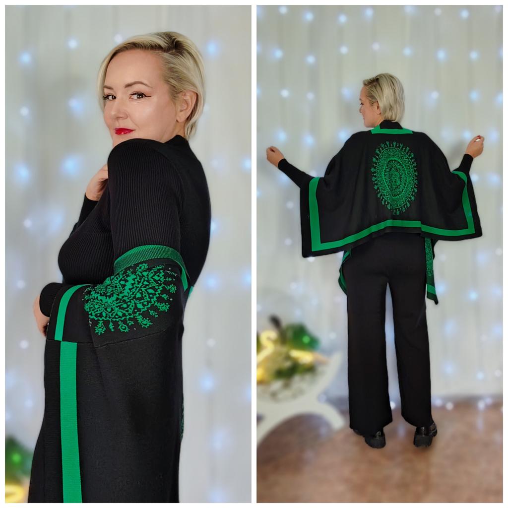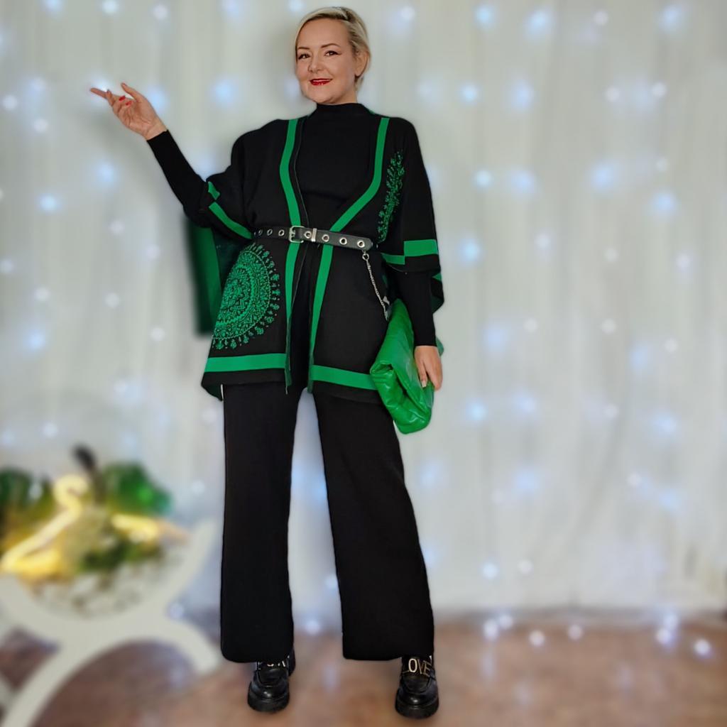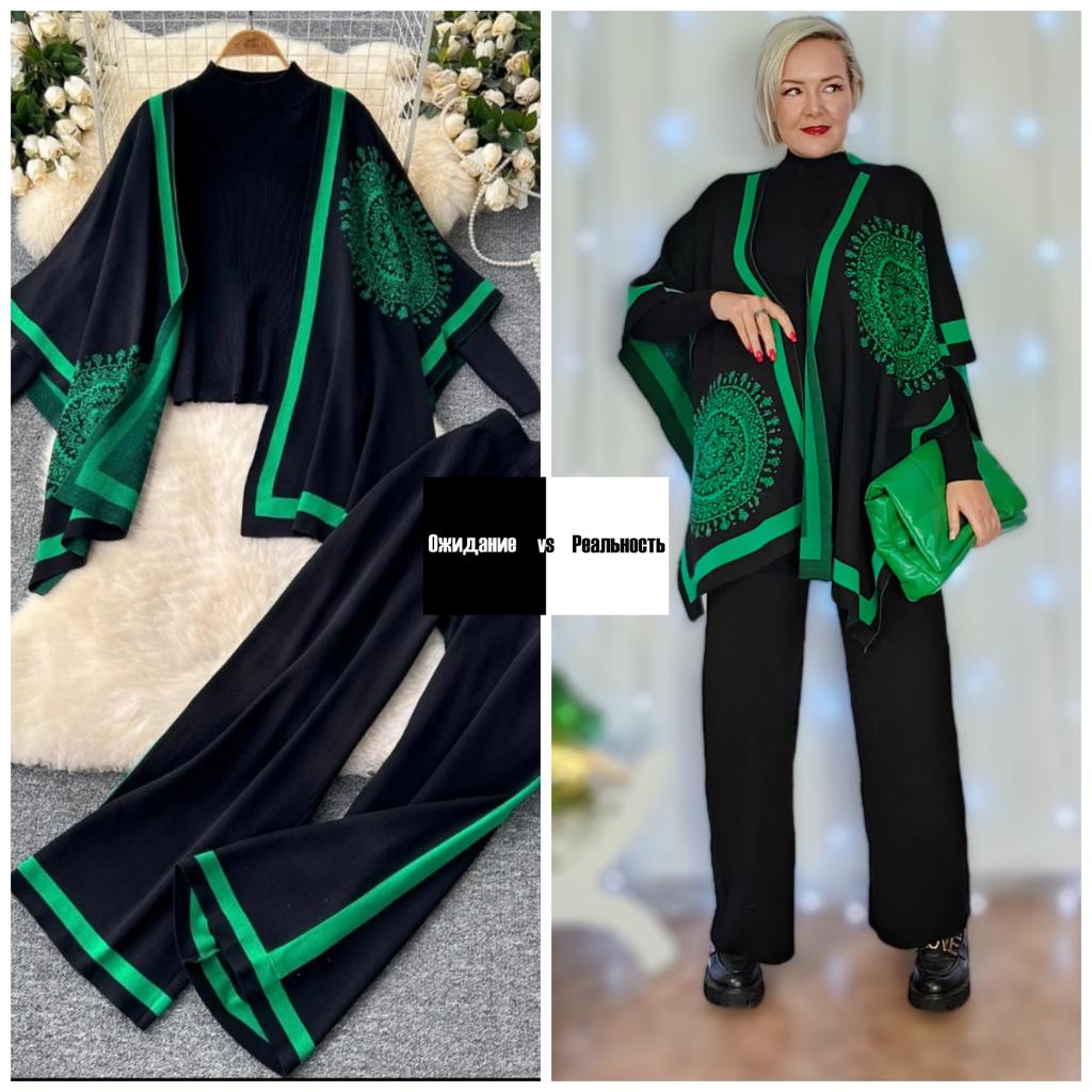 Костюм тройка с пончо 😍 Привет! Офигенный костюм тройка, который однозначно захватит Ваше сердечко! Давайте посмотрим на эту бомбу ❤️🔥💥 ‼️Добавила разговорное видео, посмотрите перед покупкой ‼️ Ткань : Приятный, качественный трикотаж, тонкий, но не дохлый. В составе много вискозы. Полотно тянется. Дизайн: Костюм состоит из трех предметов: Пончо накидка, водолазка и штаны. На талии штаны на резинке. Из минусов, на фото продавца есть лампасы на штанах, в реальности их нет. Размер : На мне единый размер. Мои параметры : рост 172 см 98/76/106 см 📏Детали : Пончо: Длина 79 см Водолазка : Длина 61 см Плечи 35 см ОГ 88 до 142 см Штаны : Длина 109 см ОТ 66 до 122 см ОБ 112 до 156 см Внутренний шов 71 см Резюмирую : Очень крутой костюм, находка для высоких девушек в том числе! Смело рекомендую! Берем❤️🔥 Я не прощаюсь, M_K #костюм_пончо